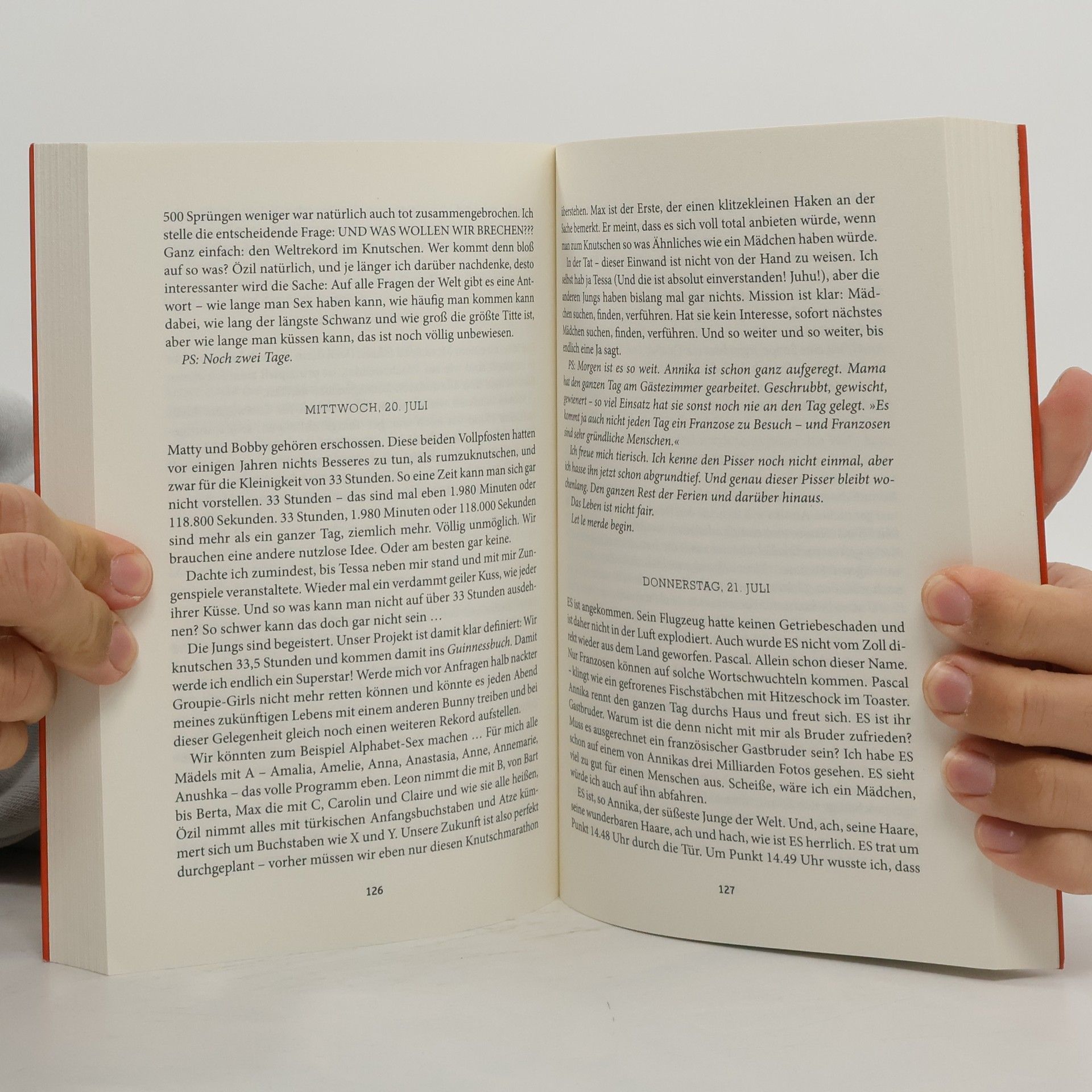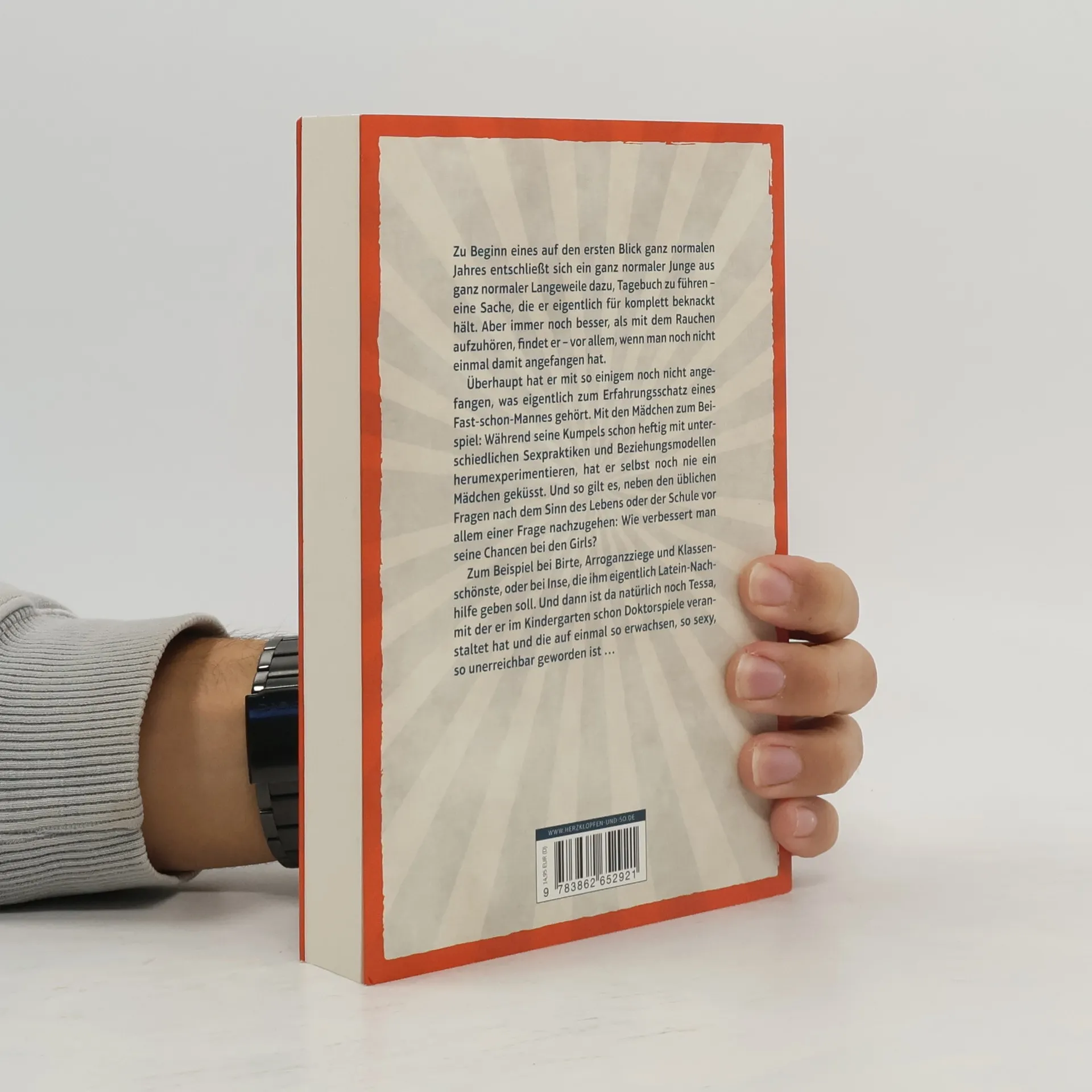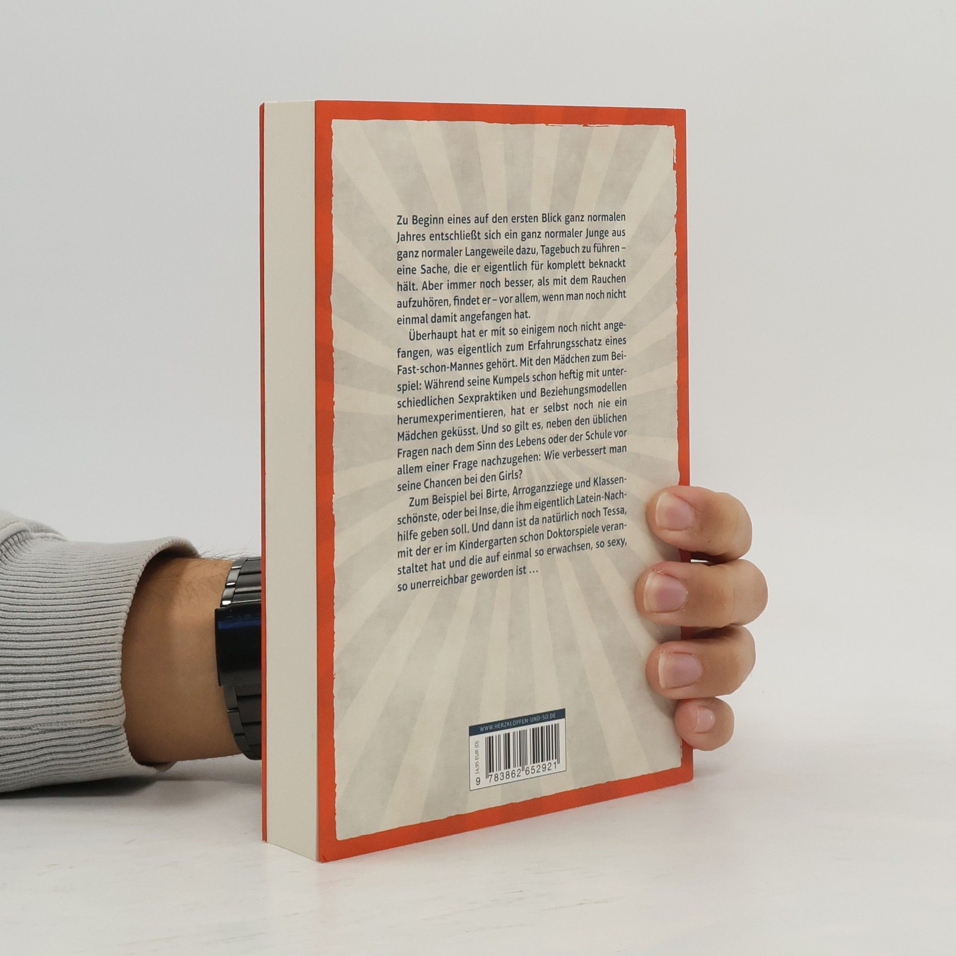 Der Protagonist von Stephan Borchers’ Roman erhält zu Weihnachten ein Notizbuch von seiner Tante, das er zunächst als Beleidigung seiner Männlichkeit empfindet. Dennoch beschließt er, es ein Jahr lang mit seinen Gedanken zu „Kindheit, Jugend, Sex“ zu füllen – ein guter Vorsatz, der weniger herausfordernd erscheint als mit dem Rauchen aufzuhören, was er ohnehin nie begonnen hat. Während seine Freunde bereits mit verschiedenen Sexpraktiken und Beziehungen experimentieren, hat er noch nie ein Mädchen geküsst. So macht er sich auf die Suche nach Antworten auf die Fragen des Lebens und insbesondere, wie er seine Chancen bei den Mädchen verbessern kann. Besonders interessiert ihn Birte, die Klassenschönste, die jedoch bereits vergeben ist, sowie Inse, die als Nachhilfelehrerin engagiert wurde. Trotz einiger Rückschläge gelingt es ihm überraschend, auch Erfolge bei den Mädchen zu verbuchen. Sein Liebesleben könnte sich entspannt entwickeln, wäre da nicht Tessa, die alles komplizierter macht.