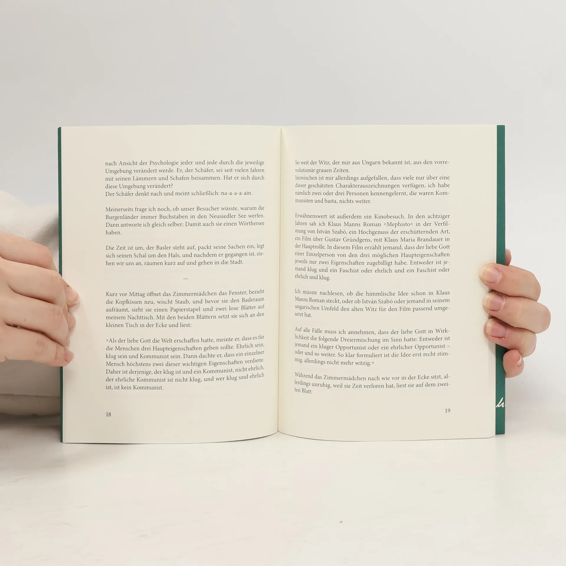 Eingestreute Witze finden sich immer wieder in Zsuzsanna Gahses Büchern. Diesmal aber stehen sie im Zentrum, die kleinen szenischen Erzählungen rund um Politik, Sprache, Sex, Krankheit und Tod. Ihren großen Auftritt haben sie mitunter auf einer kleinen Bühne, wo die doppelbödig gewitzte Gesprächskultur aus dem Elternhaus der Erzählerin aufgeführt wird. An dem Versuch, einen ungarischen Sprachwitz auf Deutsch zu erzählen, scheitert die Mutter grandios. Hans, Hannes, Juan und auch Giovanni präsentieren Witze, oft landestypische und zwischendurch auch mal schlecht und falsch erzählte Witze, voller unfreiwilliger Komik. Die so inszenierte Sammlung von Witzen und Nicht-Witzen, Beobachtungen und Figuren verknüpft sich zunehmend zu einem engmaschigen Gewebe aus Ernst und Unernst. Bei genauerem Hinschauen wird man leicht entdecken, dass Witze fast immer traurige, verrutschte Erzählungen sind, über die jemand lachen darf, und über die niemand lachen muss. Wer hier die erste Träne herausrückt, dem gehört die Erbschaft.