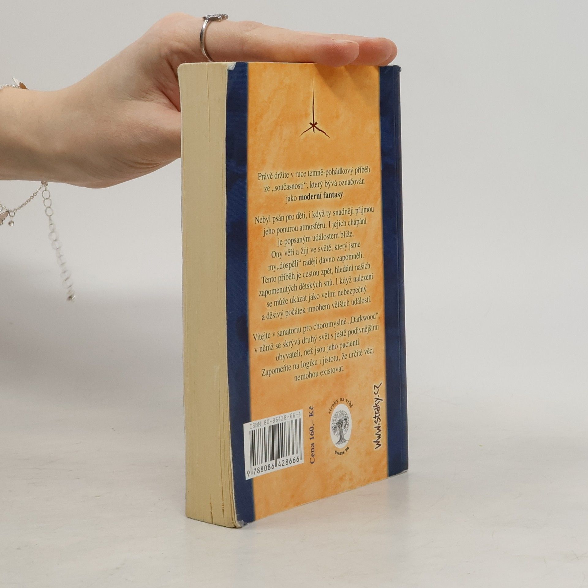 Před vámi leží temně-pohádkový příběh, moderní fantasy. Nebyl psán pro děti, i když ty snadněji přijmou jeho ponurou atmosféru. I jejich chápání je popsaným událostem blíže. Ony věří a žijí ve světě, který jsme my dospělí raději dávno zapomněli. Tento příběh je cestou zpět, hledání našich zapomenutých dětských snů. I když nalezení se může ukázat jako velmi nebezpečný a děsivý počátek mnohem větších událostí. Vítejte v sanatoriu pro choromyslné Darkwood, v němž se skrývá druhý svět s ještě podivnějšími obyvateli, než jsou jeho pacienti. Zapomeňte na logiku i jistotu, že určité věci nemohou existovat.... celý text