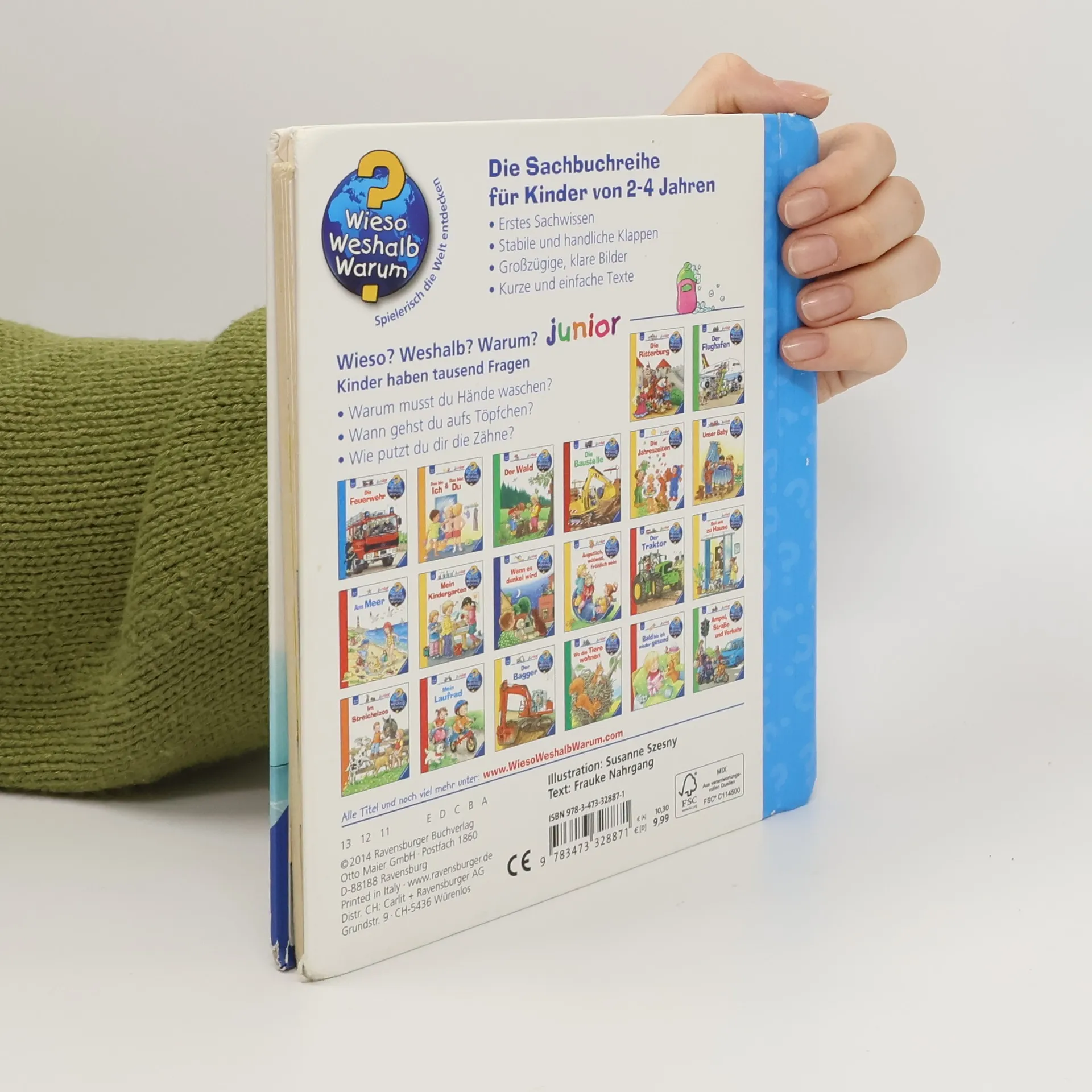 Das Abenteuer Badezimmer kann beginnen: Warum musst du Hände waschen? Wie putzt du dir die Zähne? Wann gehst du aufs Töpfchen? Hier lernen Kinder die tägliche Routine im Badezimmer spielerisch kennen. Gleichzeitig gibt das Buch klare und verständliche Antworten darauf, warum Körperpflege so wichtig ist. So verlieren Kinder die Scheu vor Seife und Schaum und aus Badetagen werden Lieblingstage! Wieso? Weshalb? Warum? junior Die Sachbuchreihe für Kinder von 2-4 Jahren Jeden Tag entdecken Kinder etwas Neues – und haben viele Fragen. Wann kommt die Feuerwehr? Was machen die Tiere im Winter? Warum muss ich Zähne putzen? Die beliebte Sachbuchreihe Wieso? Weshalb? Warum? junior beantwortet die Fragen der Kinder auf Augenhöhe. Sie beleuchtet unterschiedlichste Themen aus ihrer Alltags- und Interessenswelt altersgerecht und mit viel Liebe zum Detail. Die Reihe ist speziell auf kleine Hände und die Bedürfnisse der Kleinsten angepasst. Klare und liebevolle Bilder, kurze Sachtexte sowie handliche Klappen, die Bewegungen veranschaulichen und überraschende und lustige Einblicke gewähren, ermöglichen Kindern, sich ihre Themen selbst zu erschließen. Der Spaß am eigenhändigen Entdecken, die liebevolle Umsetzung und die hochwertige Ausstattung garantieren langanhaltende Freude an jedem Buch.
