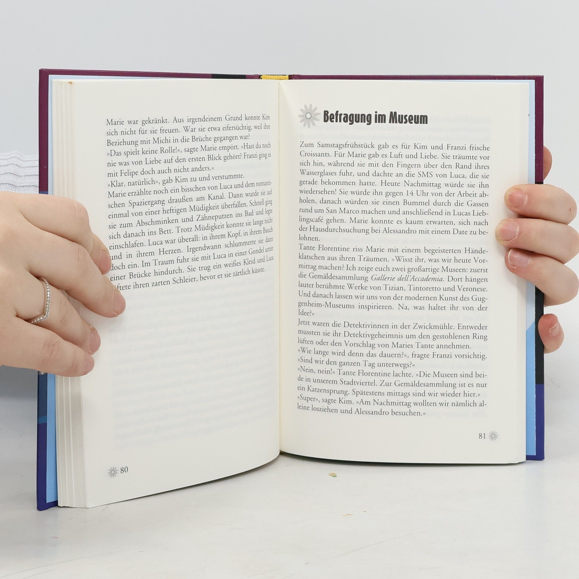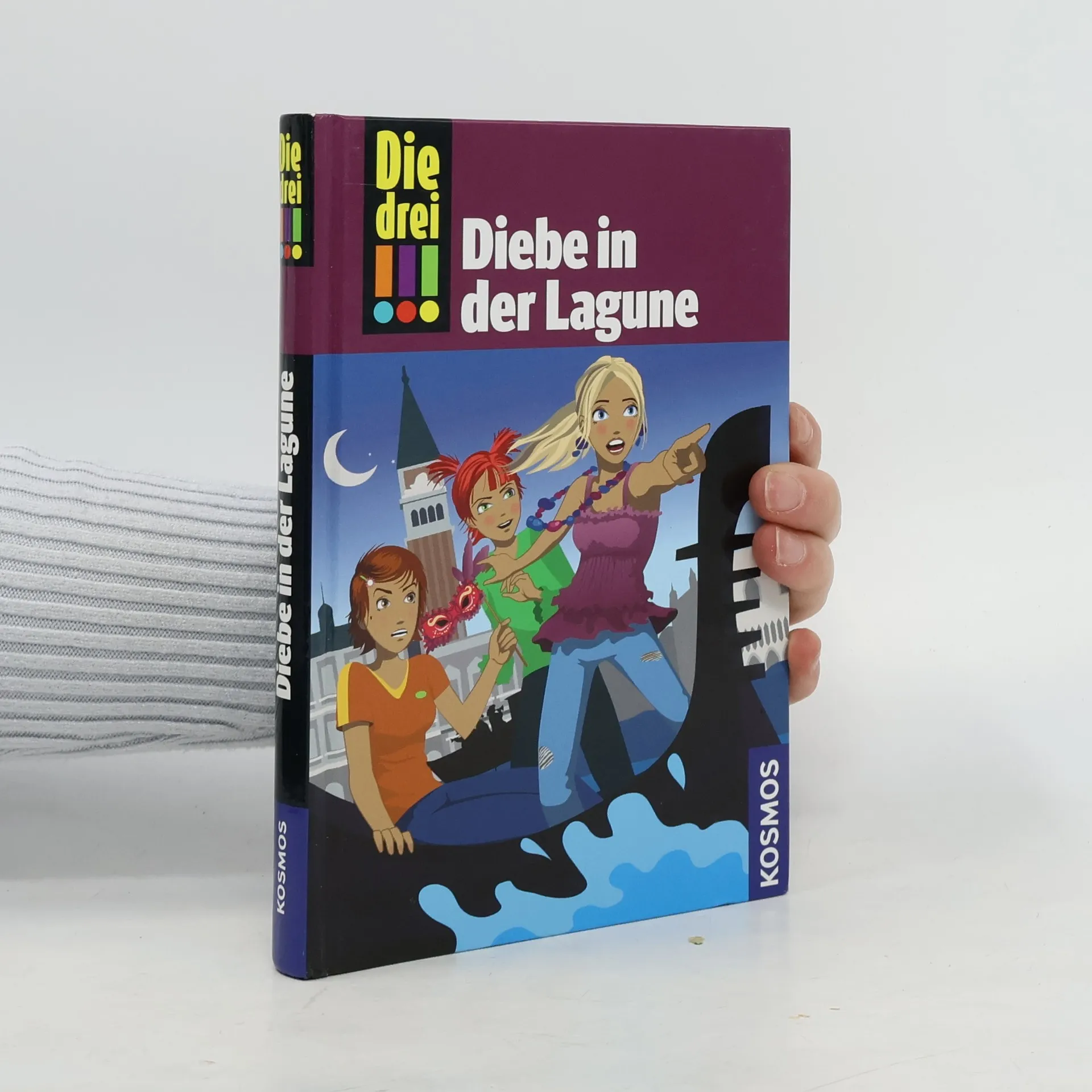 Kim, Franziska und Marie sind \"Die drei !!!\". Mutig und clever ermitteln die drei Mädchen und sind jedem Fall gewachsen! Maries Tante hat Die drei !!! zu sich nach Venedig eingeladen. Doch die fröhliche Urlaubsstimmung hält nicht lange an, denn der schöne Verlobungsring von Maries verstorbener Mutter wurde gestohlen! Auf der Suche nach dem Dieb geraten die Detektivinnen immer tiefer in die verwinkelten, düsteren Gassen von Venedig ... Neben der spannenden Detektivarbeit müssen Kim, Franziska und Marie auch immer wieder das Abenteuer \"Freundschaft\" bestehen. Es ist nämlich gar nicht so leicht, drei völlig verschiedene Meinungen unter einen Hut zu bringen. \"Die drei !!!\" stellen sich der Herausforderung und sind gemeinsam ein unschlagbares Team! Mehr anzeigen Weniger anzeigen