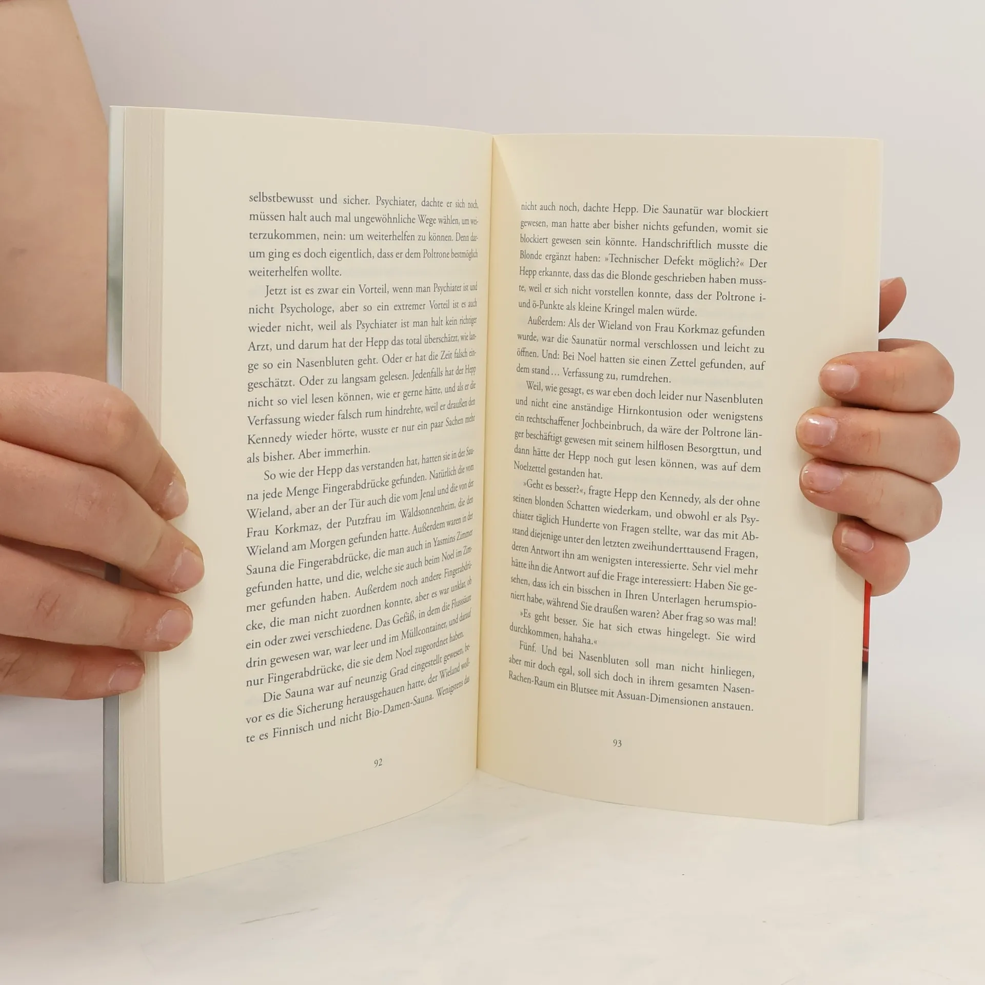 In einem Internat für schwer verhaltensauffällige Jugendliche wird der Heimleiter Wieland verletzt und bewusstlos in der Sauna aufgefunden – mehr Hummer als Mensch. Für den pragmatischen Kommissar Poltrone und seine Assistentin, die Blonde, ist der Fall schnell gelöst. Nur Dr. Paul Hepp, der Psychiater im Heim, mag nicht glauben, dass einer seiner Jugendlichen etwas damit zu tun hat, auch wenn die natürlich schon ziemlich schräg daherkommen; die Yasmin, die sich halbe Andreasgräben in den Unterarm schnitzt, die Jelena, die seit Jahren mit niemandem mehr redet, der Noel mit seinen komischen Fahrplanheften, der Phil, der immer schläft. Bald wird deutlich: Ohne etwas von Jugendpsychiatrie zu verstehen, wird man kaum klären können, was wirklich passiert ist und wer hier eigentlich das »Vollopfer« ist.