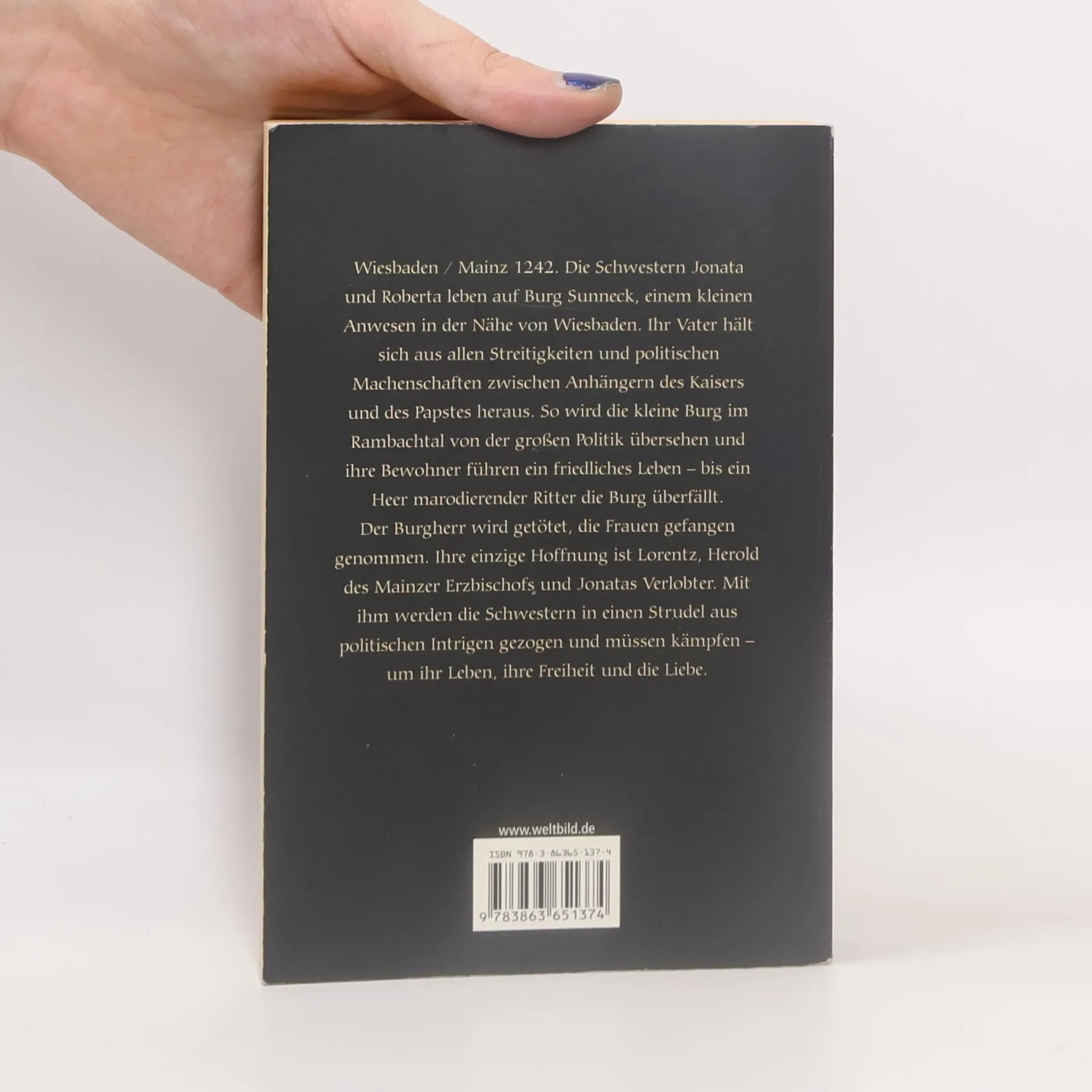 Wiesbaden / Mainz 1242: Die Schwestern Jonata und Roberta leben auf Burg Sunneck, einem kleinen Anwesen in der Nähe von Wiesbaden. Ihr Vater hält sich aus allen Streitigkeiten und politischen Machenschaften zwischen Anhängern des Kaisers und des Papstes heraus. So wird die kleine Burg im Rambachtal von der großen Politik übersehen und ihre Bewohner führen ein friedliches leben - bis ein Heer marodierender Ritter die Burg überfällt . Der Burgherr wird getötet, die Frauen gefangen genommen. Ihre einzige Hoffnung ist Lorentz, Herold des Mainzer Erzbischofs und Jonatas Verlobter. Mit ihm werden die Schwestern in den Strudel aus politischen Intrigen gezogen und müssen kämpfen - um ihr Leben, ihre Freiheit und ihre Liebe.