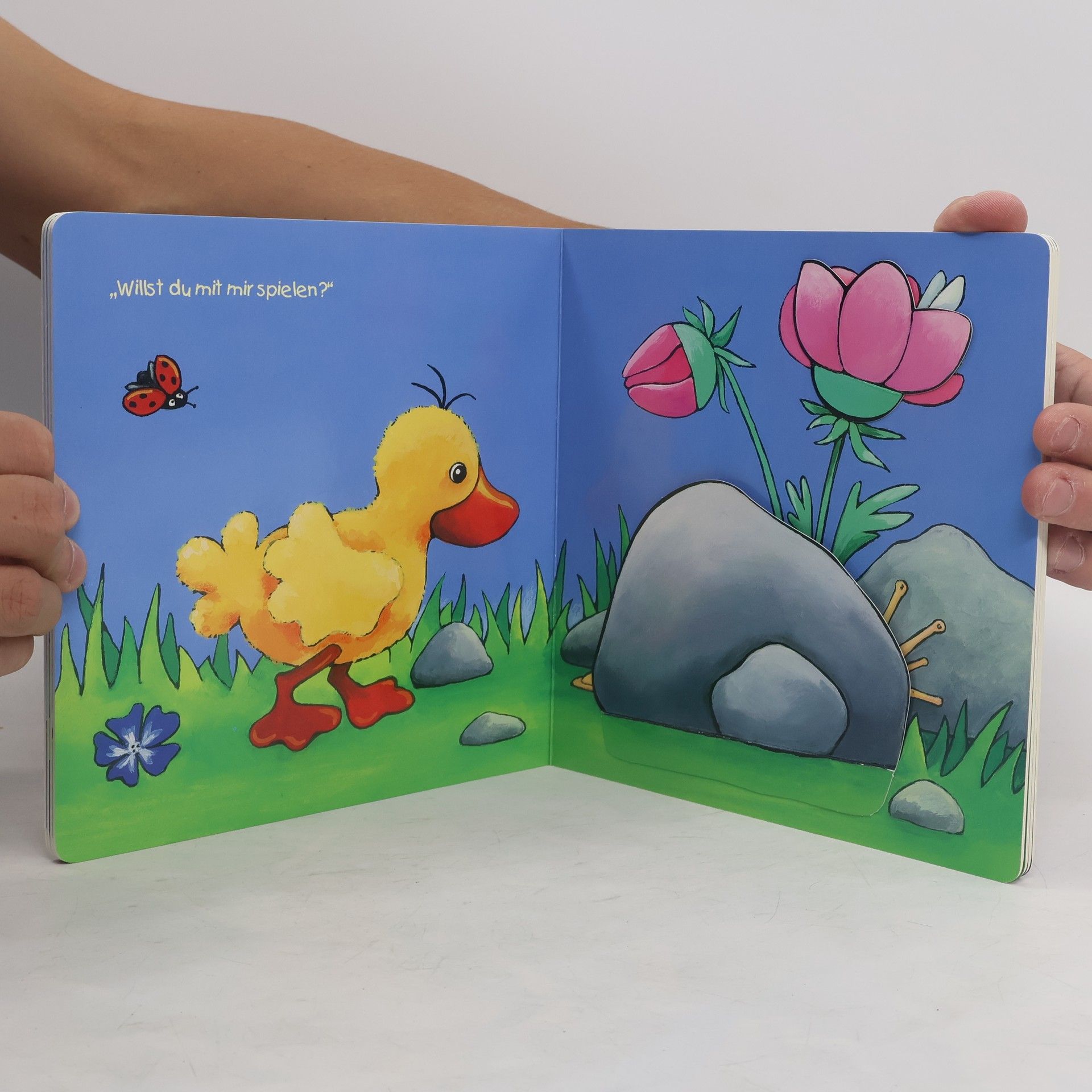 „Willst du mit mir spielen?“, fragt Ente Nelli alle ihre Freunde, aber niemand hat Zeit. Doch was ist das? Wer piepst denn da im Schilf? Ein liebenswert illustriertes Bilderbuch für ganz Kleine mit vielen großen Klappen und einem einfachen Text zum Mitsprechen.