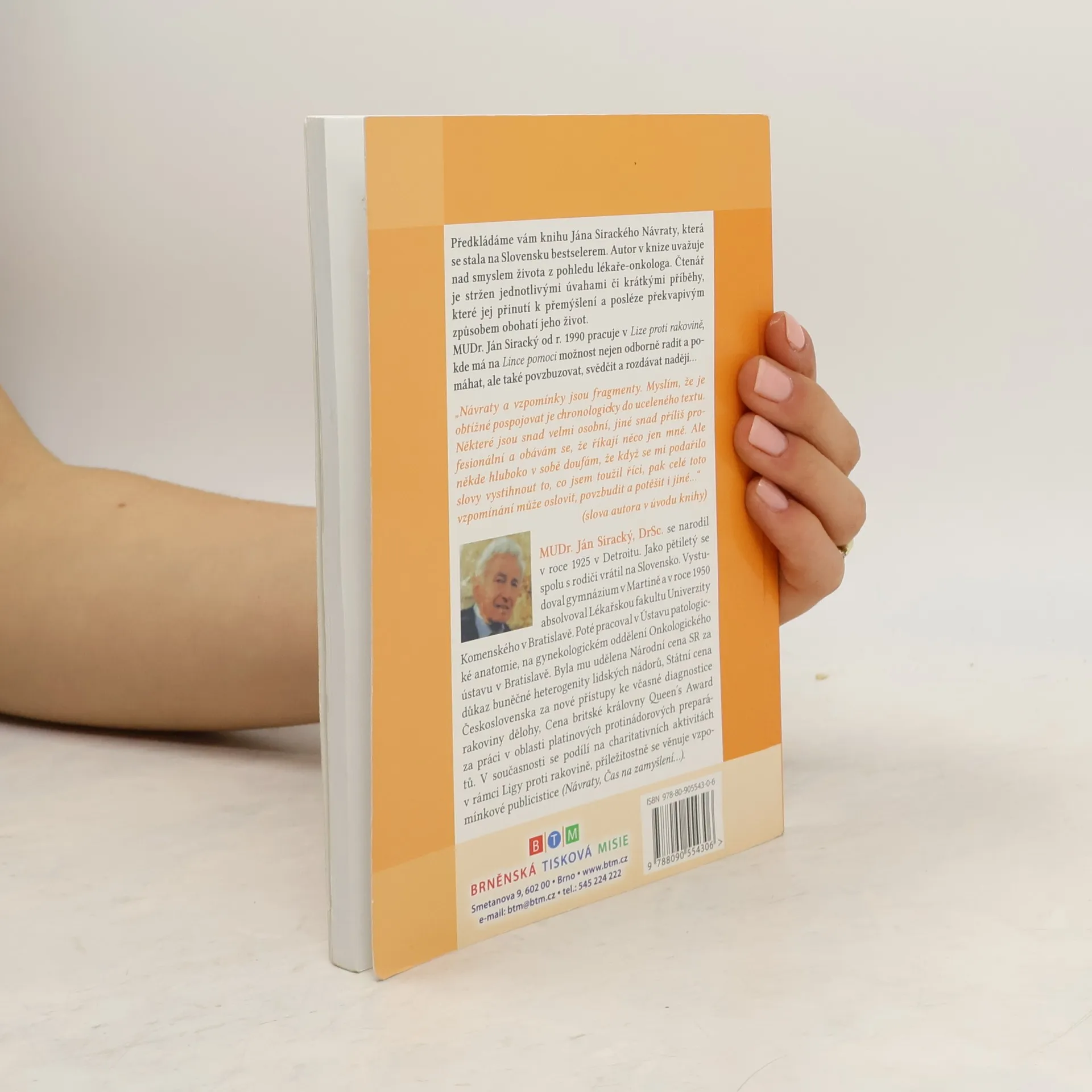 MUDr. Ján Siracký, DrSc, FRSC se narodil v roce 1925 v Detroitu a jako pětiletý se vrátil na Slovensko. Po absolvování gymnázia v Martině a Lékařské fakulty Univerzity Komenského v Bratislavě v roce 1950 pracoval v Ústavu patologické anatomie a na gynekologickém oddělení Onkologického ústavu. Získal Národní cenu SR za důkaz buněčné heterogenity lidských nádorů, Státní cenu Československa za nové přístupy k diagnostice rakoviny dělohy a Queen's Award za práci s platinovými protinádorovými preparáty. V současnosti se věnuje charitativním aktivitám v rámci Ligy proti rakovině a vzpomínkové publicistice. MUDr. Siracký k dílu uvádí, že vzpomínky jsou fragmenty, které se těžko spojují do uceleného textu. Některé jsou osobní, jiné profesionální, ale doufá, že jeho slova mohou oslovit a povzbudit i jiné. K českému vydání dodává, že mateřský jazyk je ten, ve kterém se modlíme. Jeho každodenní jazyk je slovenština, ale modlitba v češtině, kterou mu předčítala matka, mu zůstala blízká. Ocenění, že jeho vzpomínky vycházejí i v češtině, vnímá jako vzácné a potěšující.