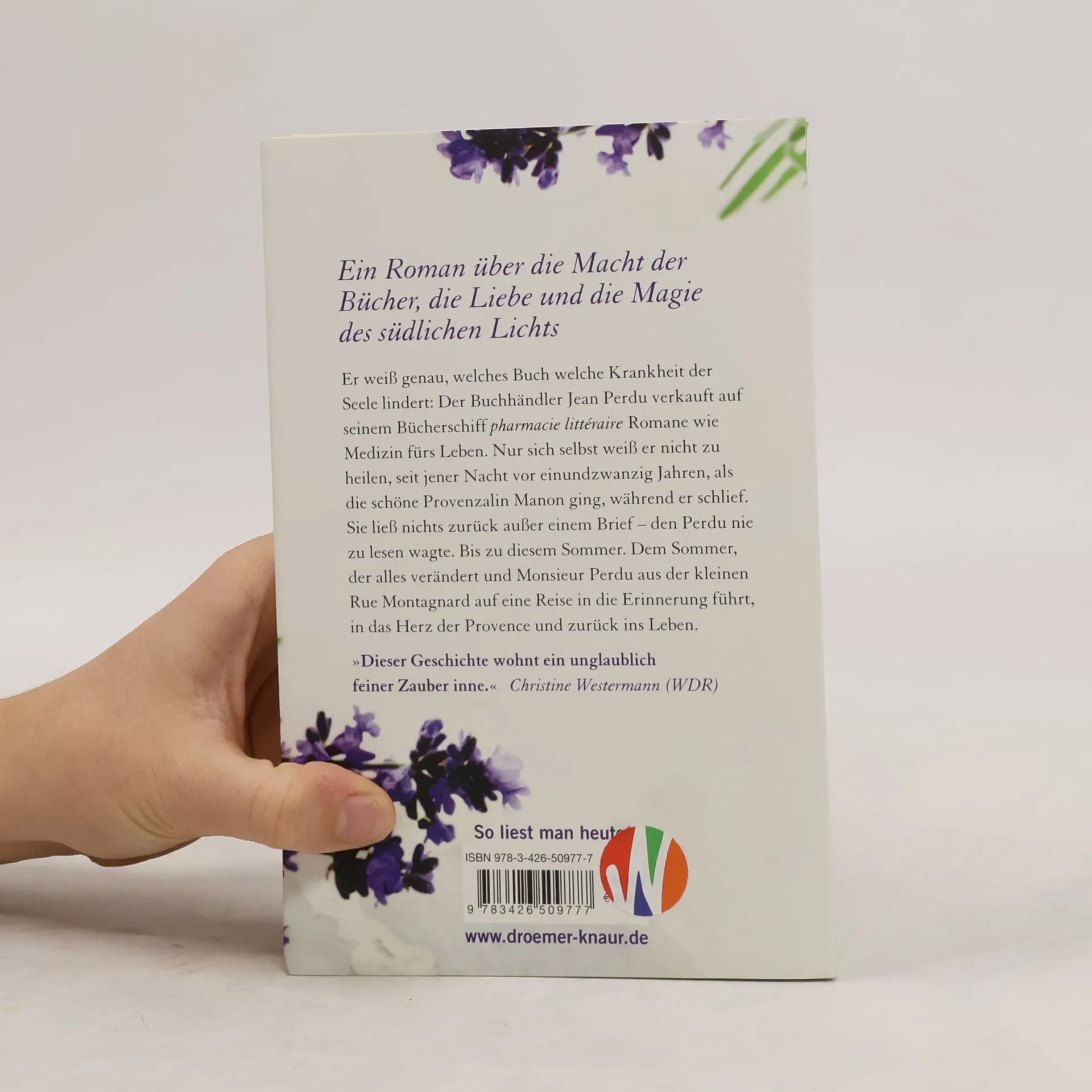 Ein unwiderstehlicher Roman über die Macht der Bücher, die Liebe und die Magie des südlichen Lichts: „Das Lavendelzimmer“ – ein internationaler Bestseller, übersetzt in 30 Sprachen, gefeiert von der Presse wie von Lesern weltweit.Er weiß genau, welches Buch welche Krankheit der Seele lindert: Auf seinem Bücherschiff, der »literarischen Apotheke«, verkauft der Pariser Buchhändler Jean Perdu Romane wie Medizin fürs Leben. Nur sich selbst weiß er nicht zu heilen, seit jener Nacht vor 21 Jahren, als die schöne Provenzalin Manon ging, während er schlief. Sie ließ nichts zurück außer einem Brief – den Perdu nie zu lesen wagte. Bis zu diesem Sommer. Dem Sommer, der alles verändert und Monsieur Perdu aus der kleinen Rue Montagnard auf eine Reise in die Erinnerung führt, in das Herz der Provence und zurück ins Leben.„Dieser Geschichte wohnt ein unglaublich feiner Zauber inne.“ Christine Westermann (WDR)