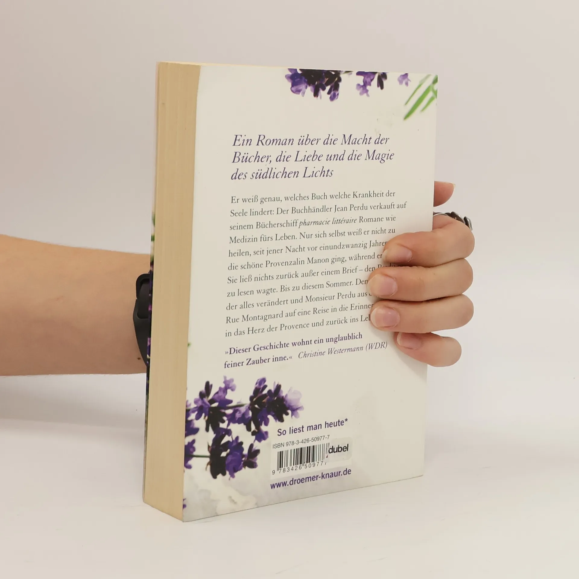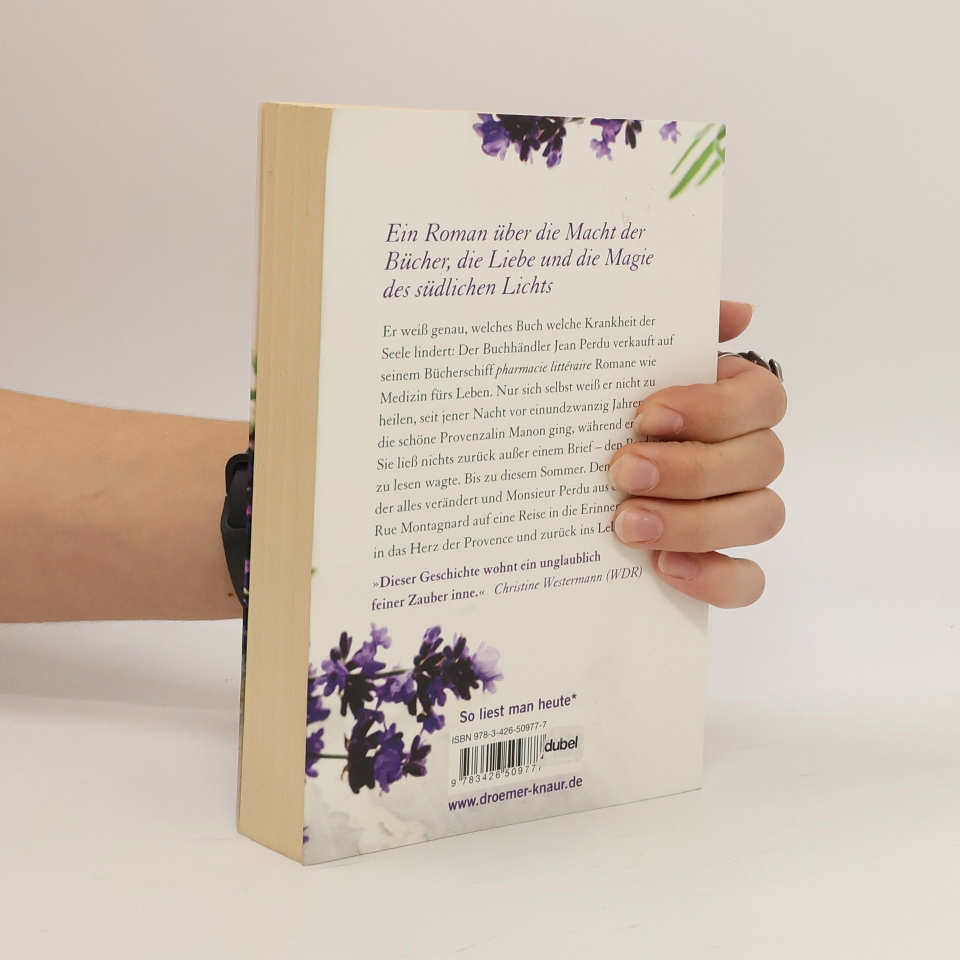 Ein unwiderstehlicher Roman über die Macht der Bücher, die Liebe und die Magie des südlichen Lichts: „Das Lavendelzimmer“ – ein internationaler Bestseller, übersetzt in 30 Sprachen, gefeiert von der Presse wie von Lesern weltweit.Er weiß genau, welches Buch welche Krankheit der Seele lindert: Auf seinem Bücherschiff, der »literarischen Apotheke«, verkauft der Pariser Buchhändler Jean Perdu Romane wie Medizin fürs Leben. Nur sich selbst weiß er nicht zu heilen, seit jener Nacht vor 21 Jahren, als die schöne Provenzalin Manon ging, während er schlief. Sie ließ nichts zurück außer einem Brief – den Perdu nie zu lesen wagte. Bis zu diesem Sommer. Dem Sommer, der alles verändert und Monsieur Perdu aus der kleinen Rue Montagnard auf eine Reise in die Erinnerung führt, in das Herz der Provence und zurück ins Leben.„Dieser Geschichte wohnt ein unglaublich feiner Zauber inne.“ Christine Westermann (WDR)