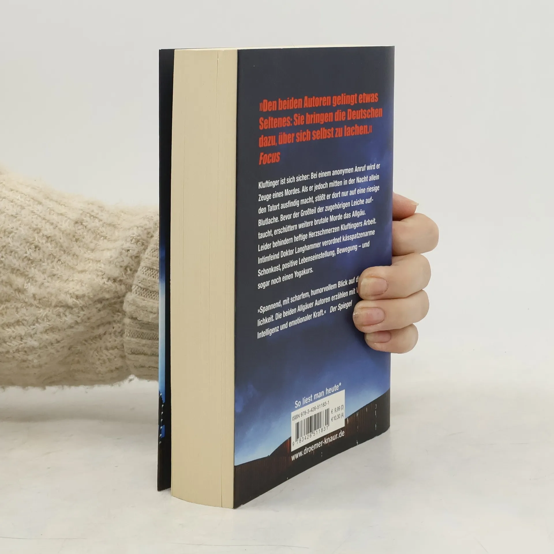 Kluftinger ist sich sicher: Bei einem anonymen Handyanruf, der ihn ausgerechnet während einer der gefürchteten Pressekonferenzen seines Chefs erreicht, wird er Zeuge eines Mordes. „Alpträume von zu viel Schweinsbraten“, tun seine Kollegen diesen Verdacht ab. Kluftinger ermittelt auf eigene Faust und findet am vermeintlichen Tatort jede Menge Blut, aber keine Leiche. Da überschlagen sich die Ereignisse: Mehrere brutale Mordfälle, anscheinend ohne Zusammenhang, erschüttern das Allgäu. Als dann doch noch der Großteil des abgängigen Toten auftaucht und Kluftinger endlich herausfindet, was all die Verbrechen verbindet, ist es fast schon zu spät ... Dabei steht er auch privat unter Druck: Seit Tagen leidet er unter heftigem Herzstechen und befürchtet sofort das Schlimmste. Eine demütigende Untersuchung bei Erzfeind Doktor Langhammer scheint das zu bestätigen. Doch der Kommissar ist entschlossen, das Ruder noch einmal herumzureißen. Aber ob fleisch- und kässpatzenarme Ernährung und ein Yogakurs da die richtigen Mittel sind?
