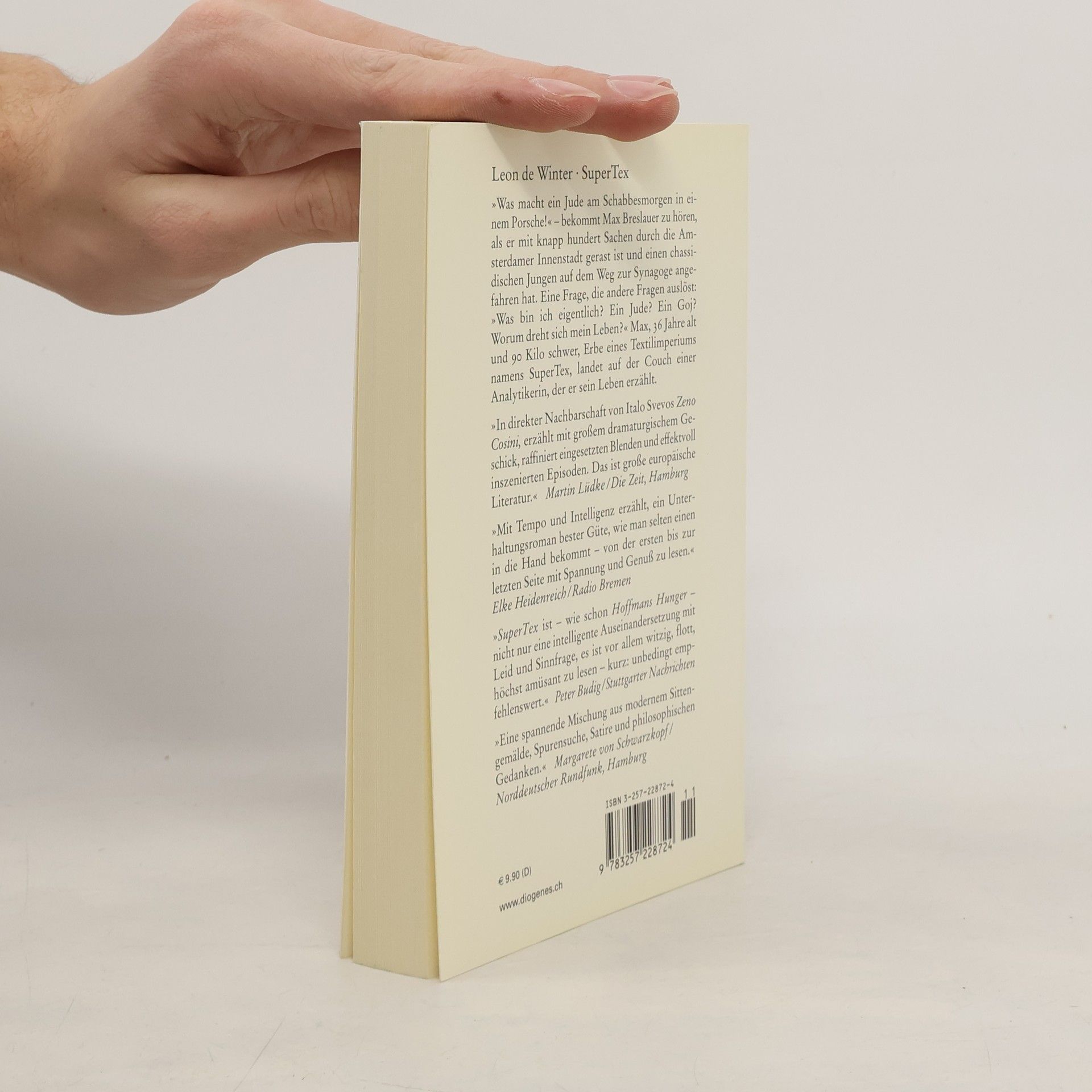 »Was macht ein Jude am Schabbesmorgen in einem Porsche!« bekommt Max Breslauer zu hören, als er durch die Amsterdamer Innenstadt gerast ist und einen chassidischen Jungen angefahren hat. Eine Frage, die andere Fragen auslöst: »Was bin ich eigentlich? Worum dreht sich mein Leben?« Max, Erbe eines Textilimperiums namens SuperTex, landet auf der Couch einer Analytikerin, der er sein Leben erzählt ...