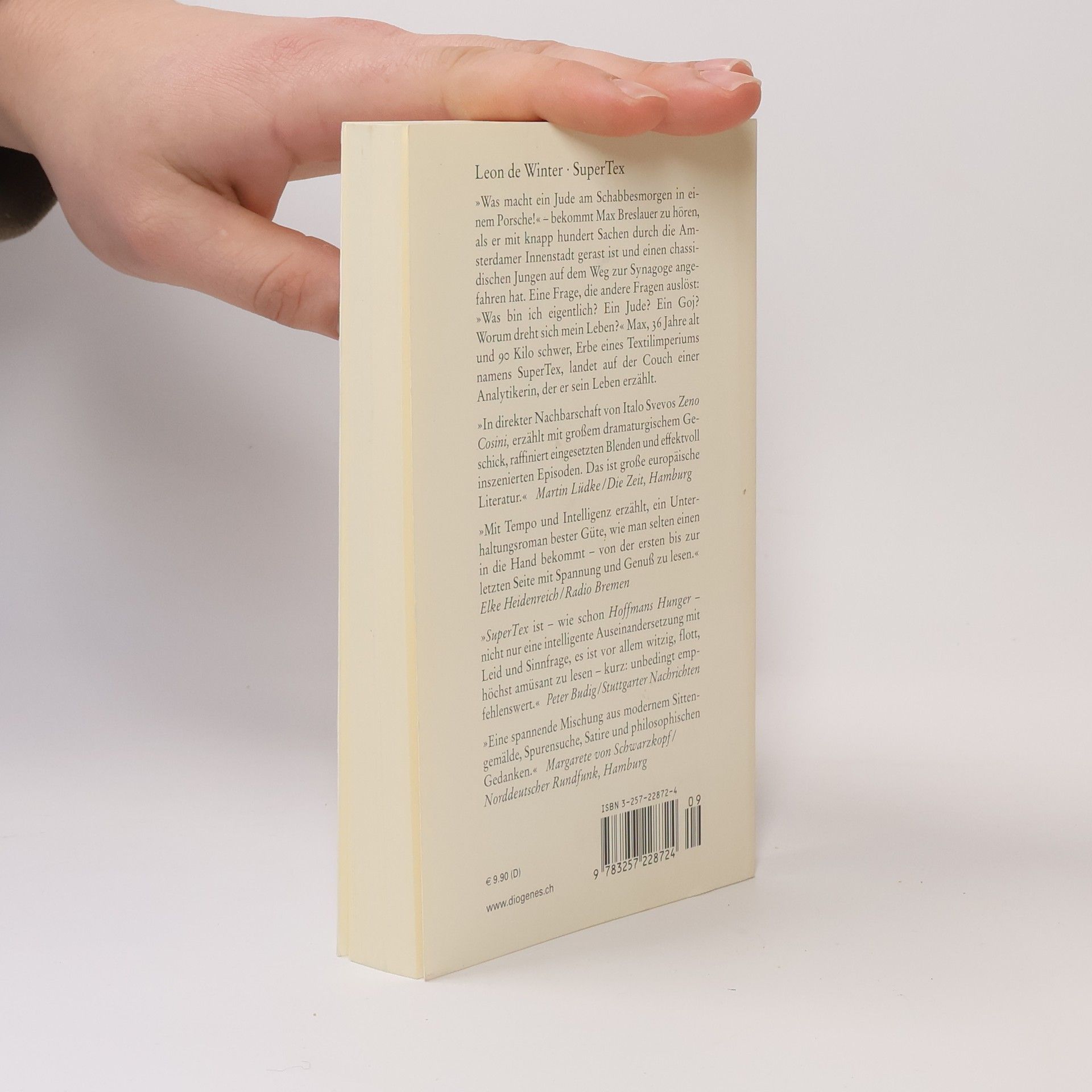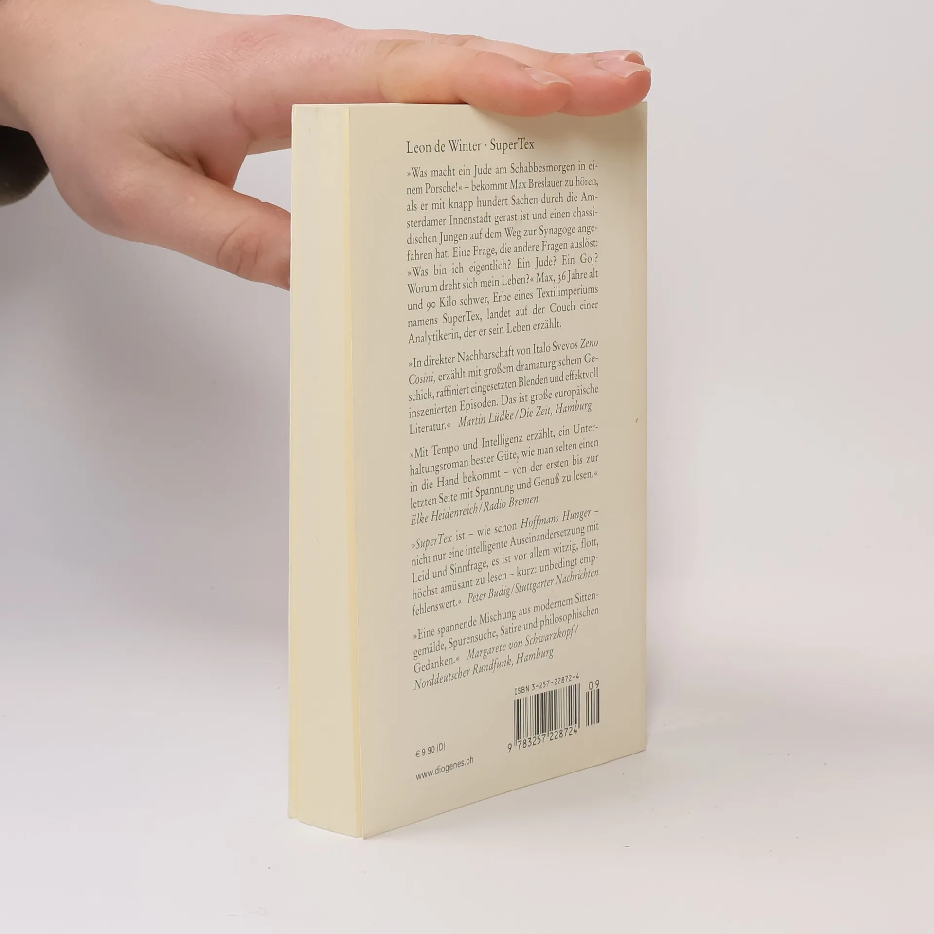»Was macht ein Jude am Schabbesmorgen in einem Porsche!« bekommt Max Breslauer zu hören, als er durch die Amsterdamer Innenstadt gerast ist und einen chassidischen Jungen angefahren hat. Eine Frage, die andere Fragen auslöst: »Was bin ich eigentlich? Worum dreht sich mein Leben?« Max, Erbe eines Textilimperiums namens SuperTex, landet auf der Couch einer Analytikerin, der er sein Leben erzählt ...