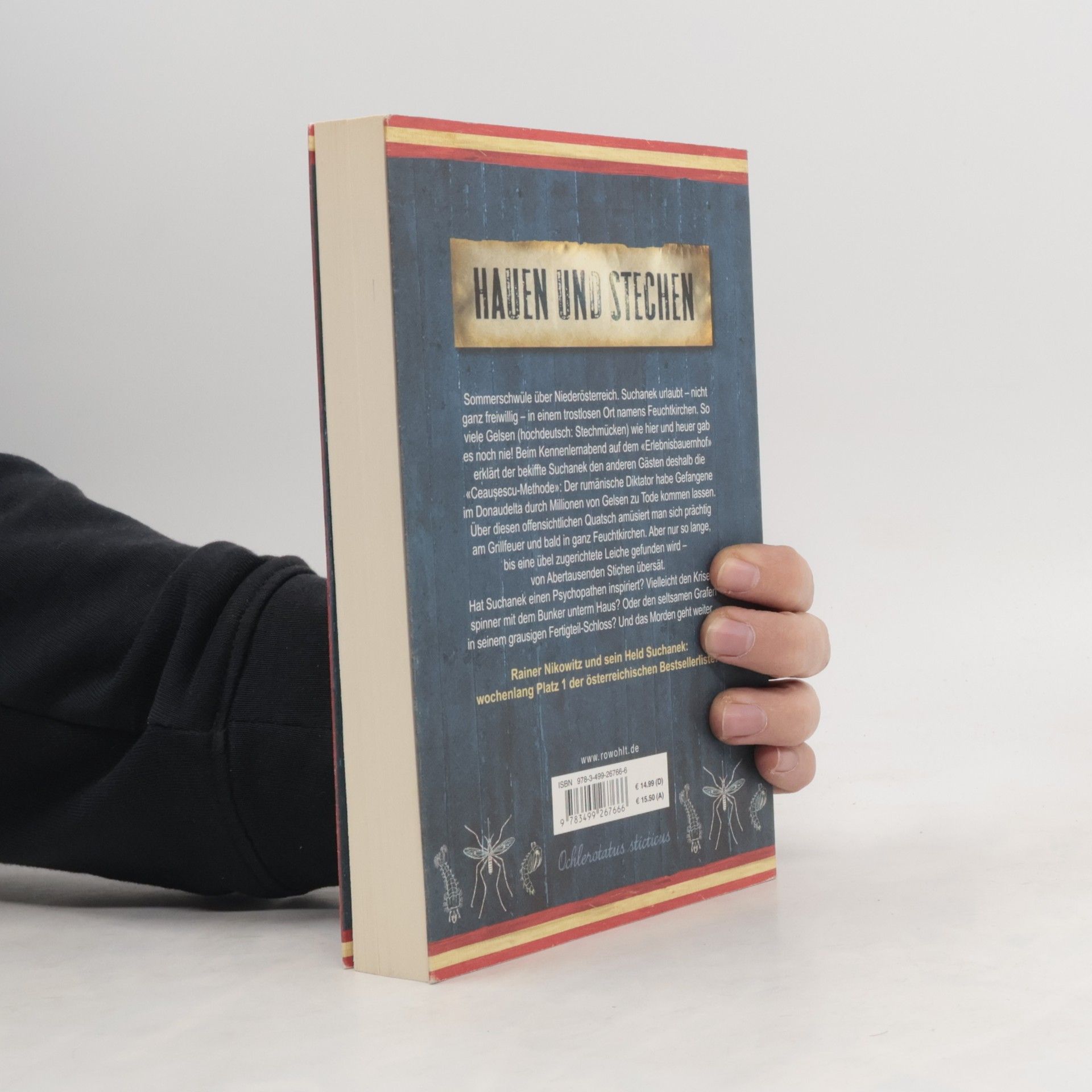 Die Nr. 1 aus Österreich: Rainer Nikowitz und sein reichlich unfreiwilliger Held Suchanek begeistern die Leser Sommerschwüle über Niederösterreich. Suchanek urlaubt - nicht ganz freiwillig - in einem traurigen Ort namens Feuchtkirchen. So viele Gelsen (hochdeutsch: Stechmücken) wie hier und heuer gab es noch nie! Beim Kennenlernabend auf dem «Erlebnisbauernhof» erklärt Suchanek den anderen Gästen deshalb die «Ceausescu-Methode»: Der Diktator habe Gefangene im Donaudelta durch Millionen von Gelsen zu Tode kommen lassen. Darüber amüsiert man sich prächtig am Grillfeuer. Aber nur bis zum nächsten Morgen, als eine gefesselte Leiche gefunden wird. Sie ist von Stichen übersät. Aber auch nicht unerheblich von Wildsauen angefressen. Hat Suchanek einen Psychopathen inspiriert? Vielleicht den Krisenspinner mit dem Bunker unterm Haus? Oder den seltsamen Grafen in seinem erzhässlichen Herrenhaus? Und das Morden geht weiter...