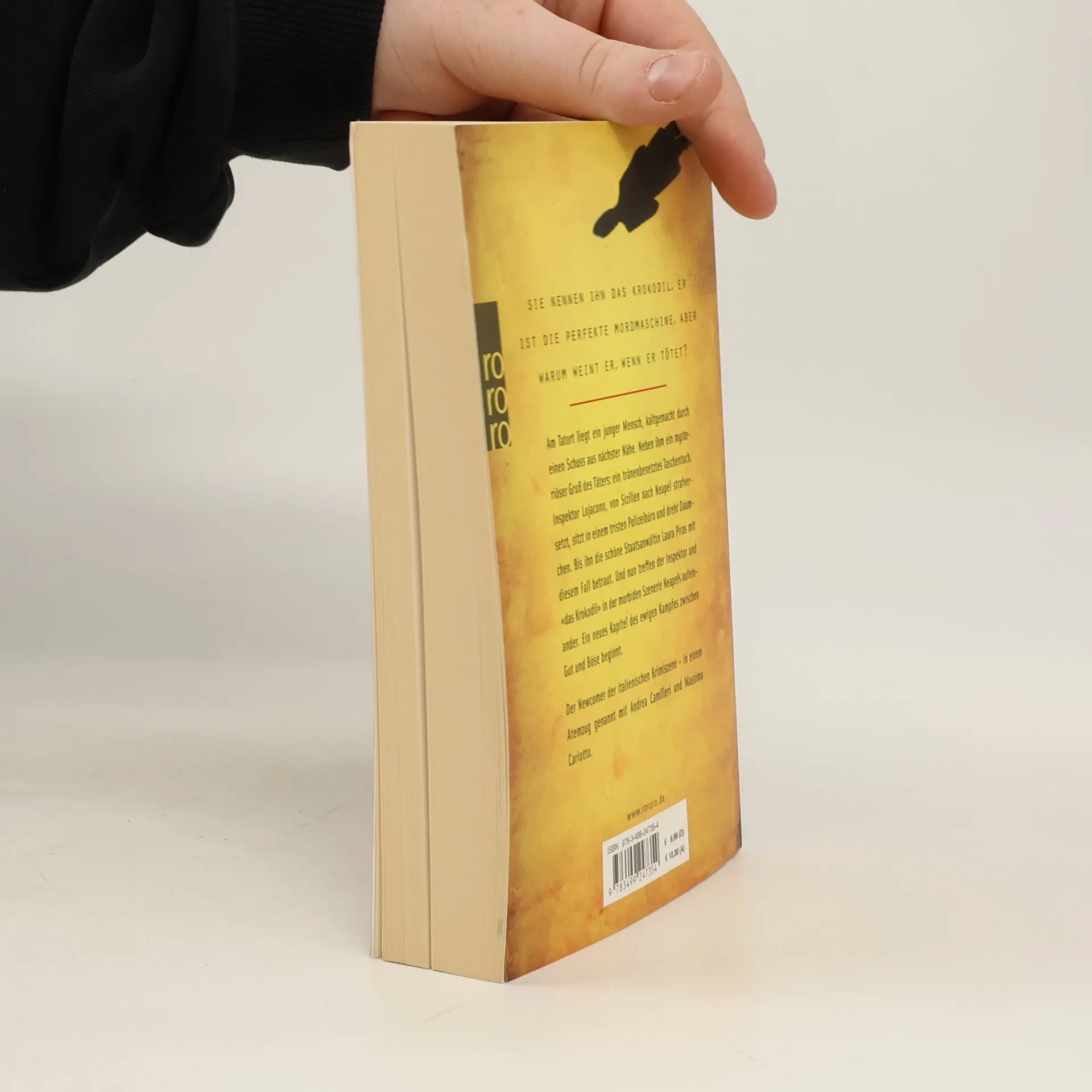 Sie nennen ihn das Krokodil. Er ist die perfekte Mordmaschine. Aber warum weint er, wenn er tötet? Am Tatort liegt ein junger Mensch, kaltgemacht durch einen Schuss aus nächster Nähe. Neben ihm ein mysteriöser Gruß des Täters : ein tränenbenetztes Taschentuch. Inspektor Lojacono, von Sizilien nach Neapel strafversetzt, sitzt in einem tristen Polizeibüro und dreht Däumchen. Bis ihn die schöne Staatsanwältin Laura Piras mit diesem Fall betraut. Und nun treffen der Inspektor und «das Krokodil» in der morbiden Szenerie Neapels aufeinander. Ein neues Kapitel des ewigen Kampfes zwischen Gut und Böse beginnt. Der Newcomer der italienischen Krimiszene – in einem Atemzug genannt mit Andrea Camilleri und Massimo Carlotto.