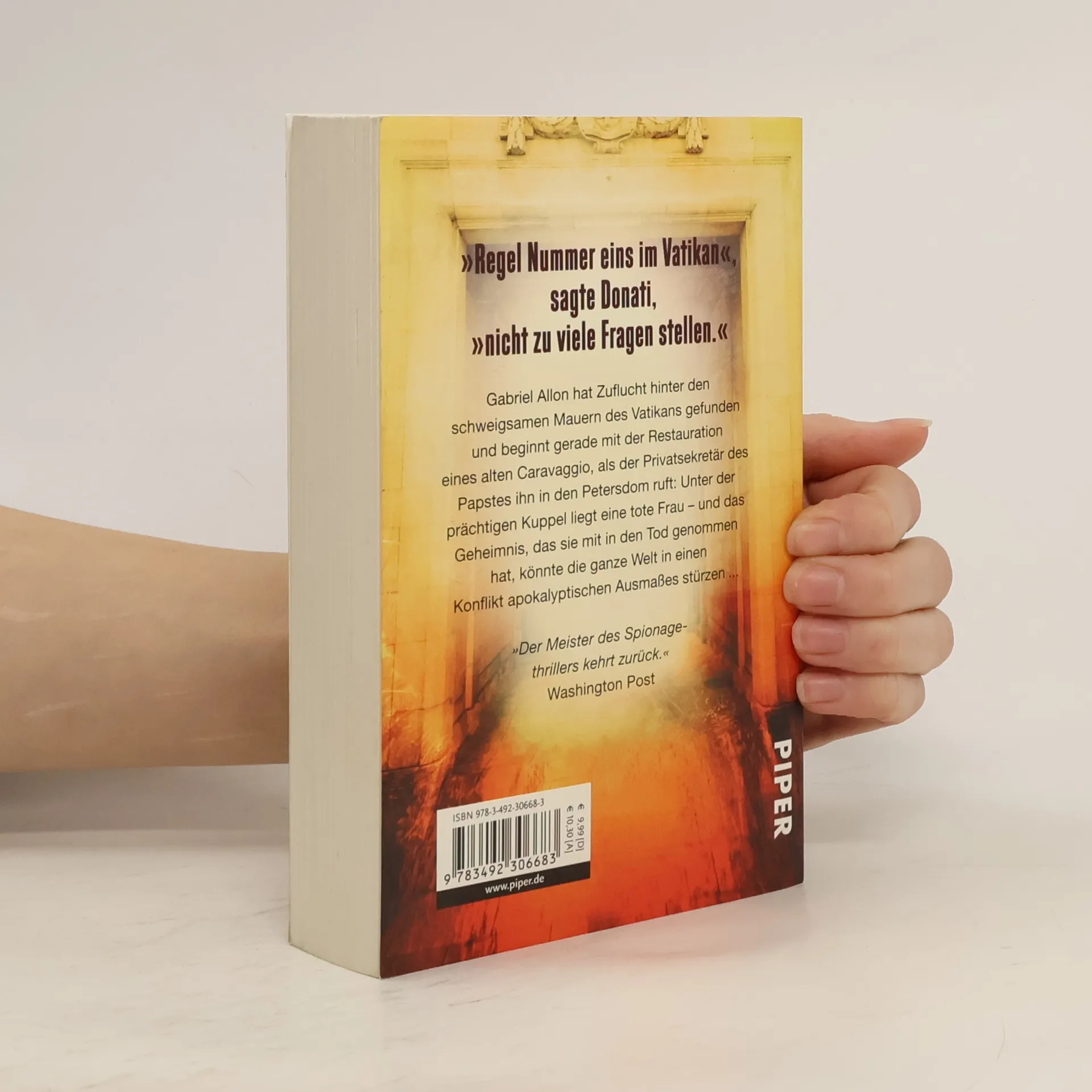 Gabriel Allon hat Zuflucht hinter den schweigsamen Mauern des Vatikans gefunden und beginnt gerade mit der Restauration eines alten Caravaggio, als der Privatsekretär des Papstes ihn in den Petersdom ruft: Unter der prächtigen Kuppel liegt eine tote Frau – und das Geheimnis, das sie mit in den Tod genommen hat, könnte die ganze Welt in einen Konflikt apokalyptischen Ausmaßes stürzen …