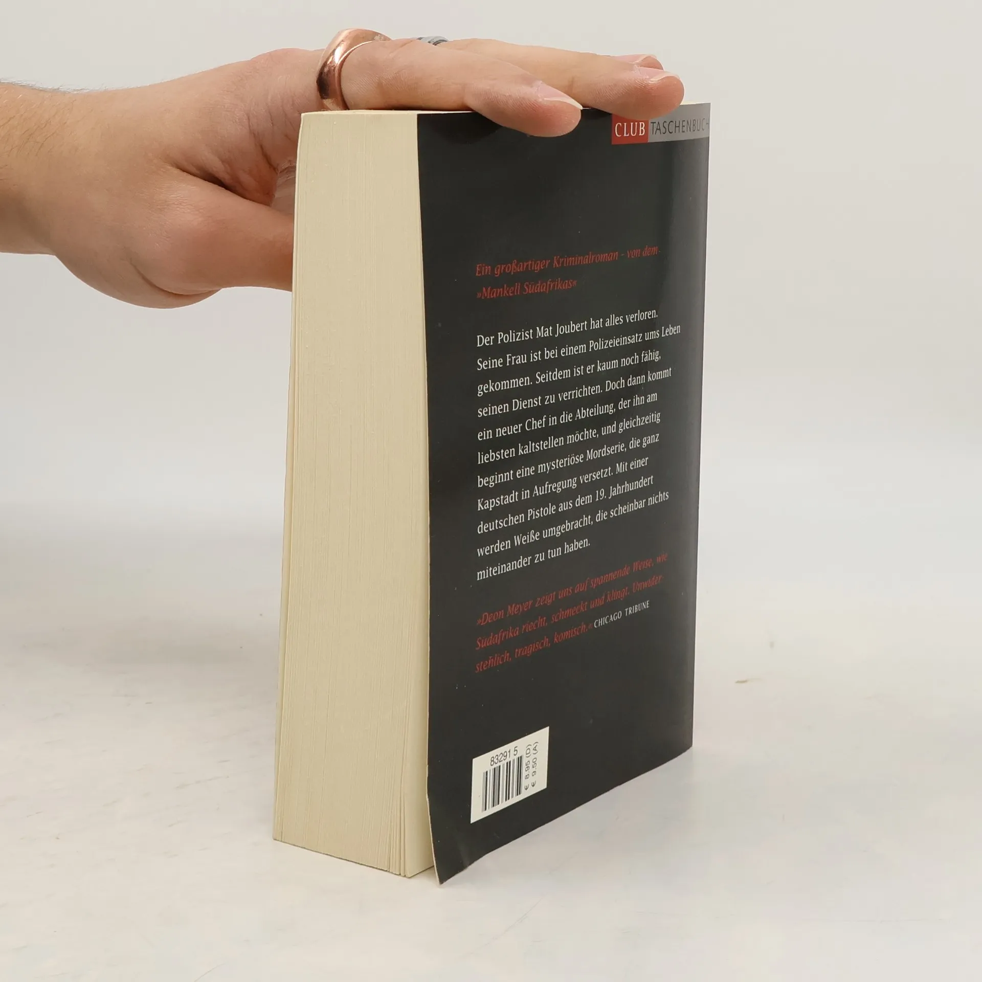 Aufruhr in Kapstadt Seit dem Tod seiner Frau Lara ist Polizist Mat Joubert auf dem Weg nach unten. Er hat Übergewicht, er raucht zuviel, und neuerdings beschweren sich sogar die Kollegen über ihn. Als aus England ein neuer Chef nach Kapstadt kommt, erhält Joubert eine ernste Warnung: Entweder geht er zu einem Psychologen und lässt sich betreuen, oder er muss den Dienst quittieren. Während er noch zögert, was er tun soll, beginnt ein Serienmörder mit einer alten deutschen Pistole sein Unwesen zu treiben – und plötzlich steckt Joubert in seinem schwierigsten Fall. Für die Morde an mehreren weißen Männern gibt es scheinbar kein Motiv. Deon Meyer versteht es, einen gierig Seite um Seite umblättern zu lassen.“ Frankfurter Rundschau, Sylvia Staude.