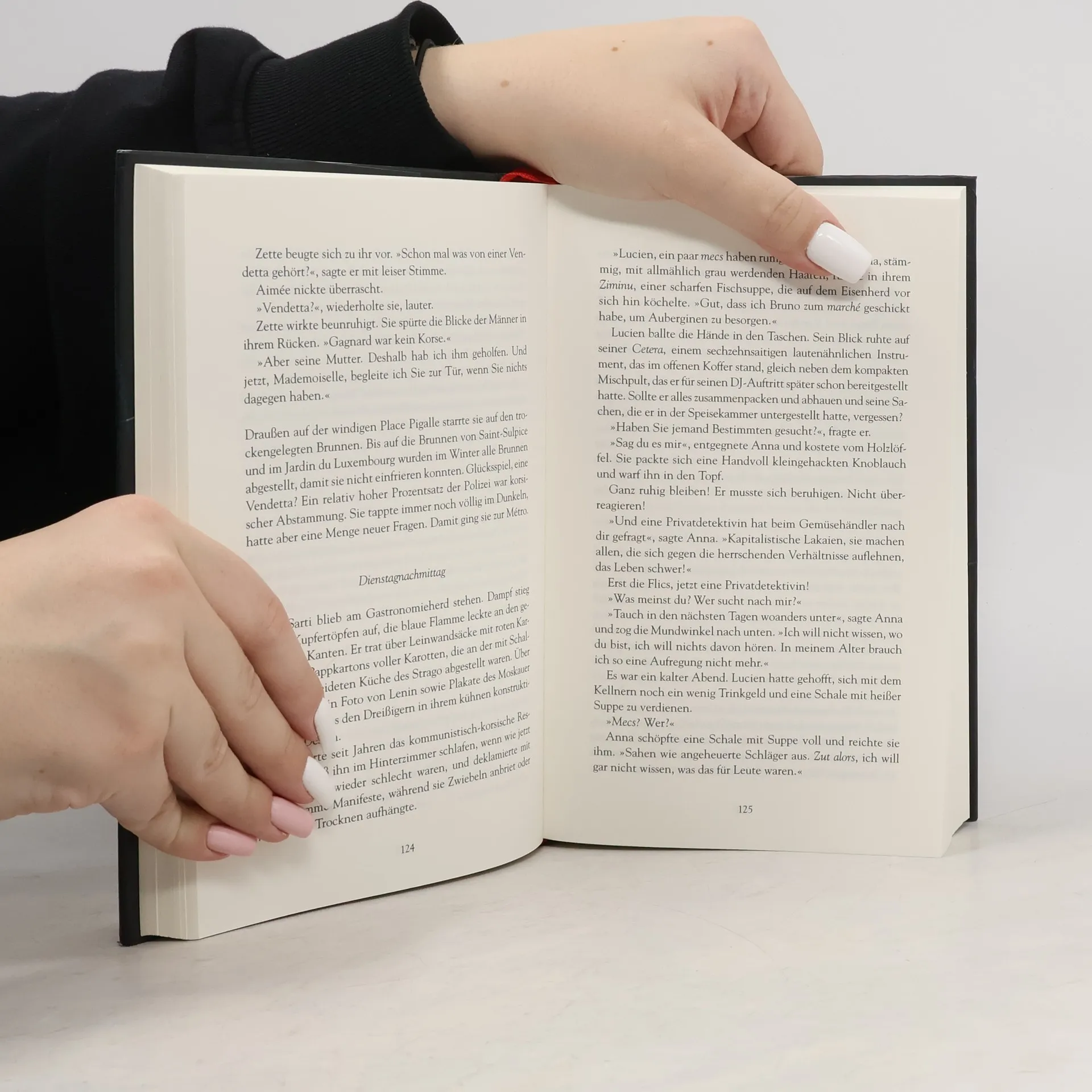 Seit ihrer Kindheit ist Aimée mit Laure befreundet, die bei der Pariser Polizei arbeitet. Für die Integrität ihrer Freundin würde die Detektivin ihre Hand ins Feuer legen. Doch dann gerät Laure plötzlich unter Mordverdacht. Als die Polizistin ihren unliebsamen Kollegen Jacques auf einer Mission am Montmartre begleiten muss, wird dieser erschossen aufgefunden. Laure kann sich an nichts erinnern, doch ihre Waffe ist die Tatwaffe, sie selbst hat Schmauchspuren an den Händen und wird des Mordes an ihrem Partner beschuldigt. Bei dem Versuch, die Unschuld ihrer Freundin zu beweisen, begibt sich Aimée Leduc in die pittoreske Welt des Montmartre. Ihr Weg führt sie zu einer Prostituierten im Moulin Rouge, zur Stieftochter eines durchgeknallten surrealistischen Malers und zu einem merkwürdigen korsischen Barbesitzer. Und was hat 'Big Ears', eine französische Überwachungsanlage, die für den Sicherheitsdienst Telefonate und E-Mails aufzeichnet, mit dem erschossenen Polizisten zu tun? Auf der Suche nach dem Mörder und im Moment höchster Gefahr findet Aimée etwas heraus, das sie selbst bis heute verfolgt: Die Wahrheit über den Tod ihres Vaters, der vor Jahren durch eine Autobombe ums Leben kam …