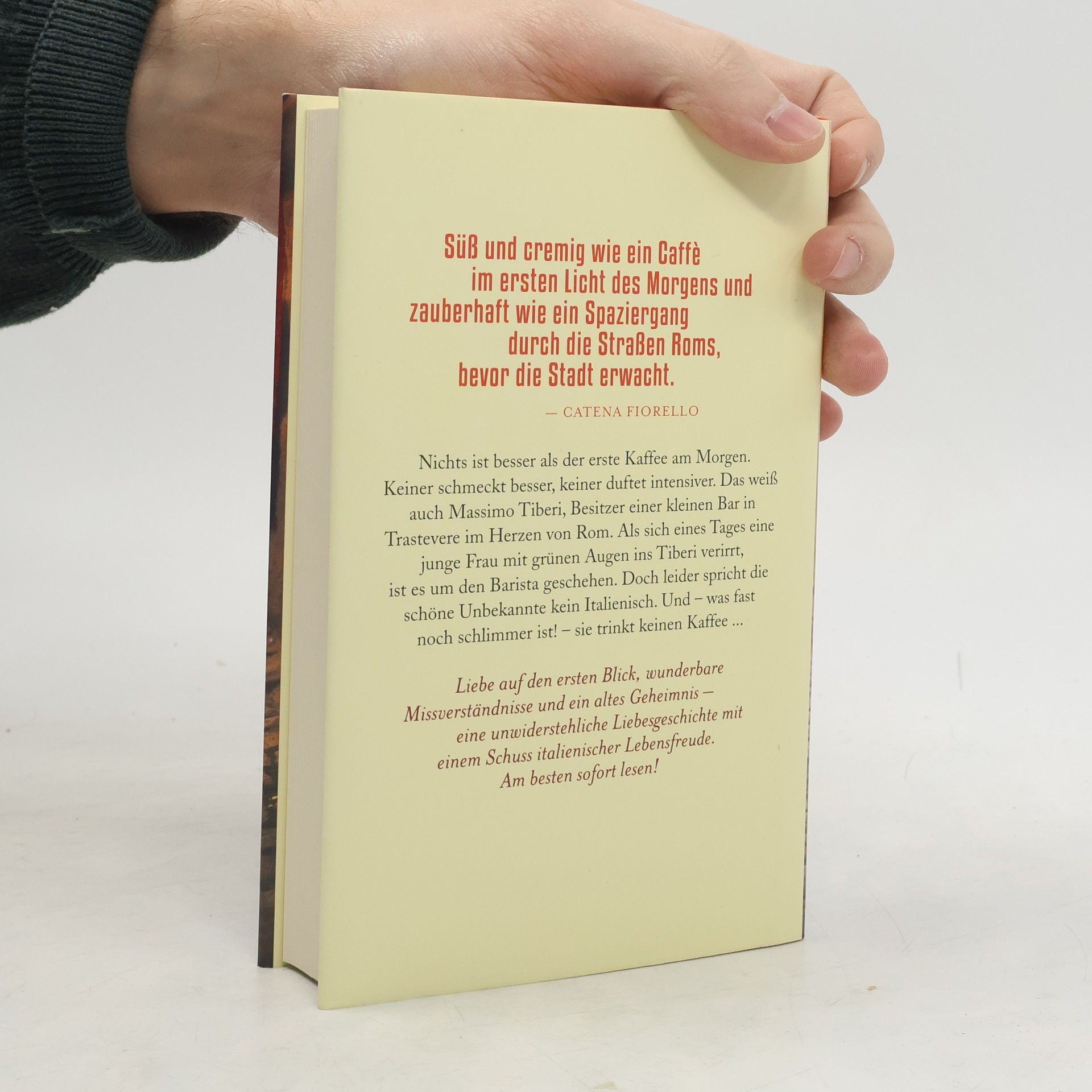 Massimo ist Besitzer einer kleinen Bar im Herzen Roms und war noch nie im Leben richtig verliebt. Jeden Morgen schlendert er durch die noch schlafende Stadt, freut sich auf seinen ersten Kaffee und auf die Stammkunden, die nach und nach eintrudeln. Zufrieden mit seinem Leben, findet Massimo, dass es ihm eigentlich auch allein recht gut geht. Das alles ändert sich schlagartig, als eines Tages die junge Französin Geneviève die Bar betritt. Der Barista ist fasziniert von der schönen Fremden, kann sich ihr aber nicht verständlich machen, was zur Folge hat, dass sie keine fünf Minuten später den Inhalt einer Zuckerdose auf den Tresen kippt, ihm die Tür vor der Nase zuschlägt und ihn mit heftig pochendem Herzen zurücklässt. Doch die Frau mit den grünen Augen wird bald in die Bar Tiberi zurückkehren: Denn sie hat ein Geheimnis, das sie genau an diesen Ort bindet und von dem Massimo nichts ahnt. Vergeblich versucht der verliebte Barista ihr mit den Mitteln den Hof zu machen, die er am besten beherrscht: mit Espresso, Cappuccino und langen Spaziergängen durch das nächtliche Rom. Trotz aller Geheimnisse und des unglücklichen Umstands, dass die Angebetete nur Rosentee mag, gibt Massimo die Hoffnung nicht auf, irgendwann den ersten Kaffee des Morgens mit dieser Frau zu trinken. Und zwar jeden Morgen.