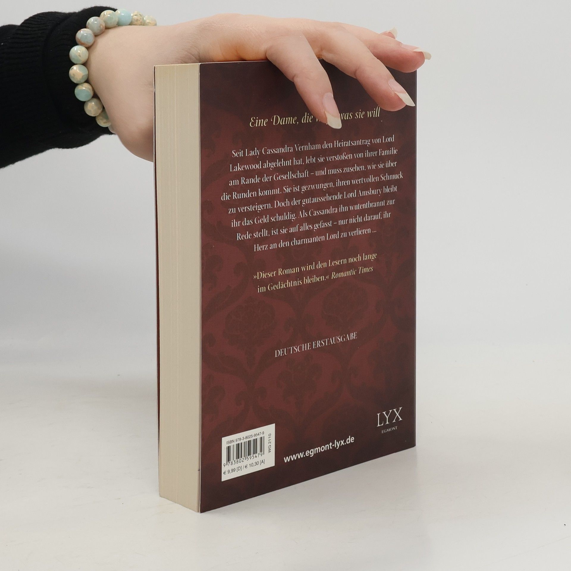 Seit Lady Cassandra Vernham den Heiratsantrag von Lord Lakewood abgelehnt hat, lebt sie verstoßen von ihrer Familie am Rande der Gesellschaft - und muss zusehen, wie sie über die Runden kommt. Sie ist gezwungen, ihren wertvollen Schmuck zu versteigern. Doch der gutaussehende Lord Amsbury bleibt ihr das Geld schuldig. Als Cassandra ihn wutentbrannt zur Rede stellt, ist sie auf alles gefasst - nur nicht darauf, ihr Herz an den charmanten Lord zu verlieren -