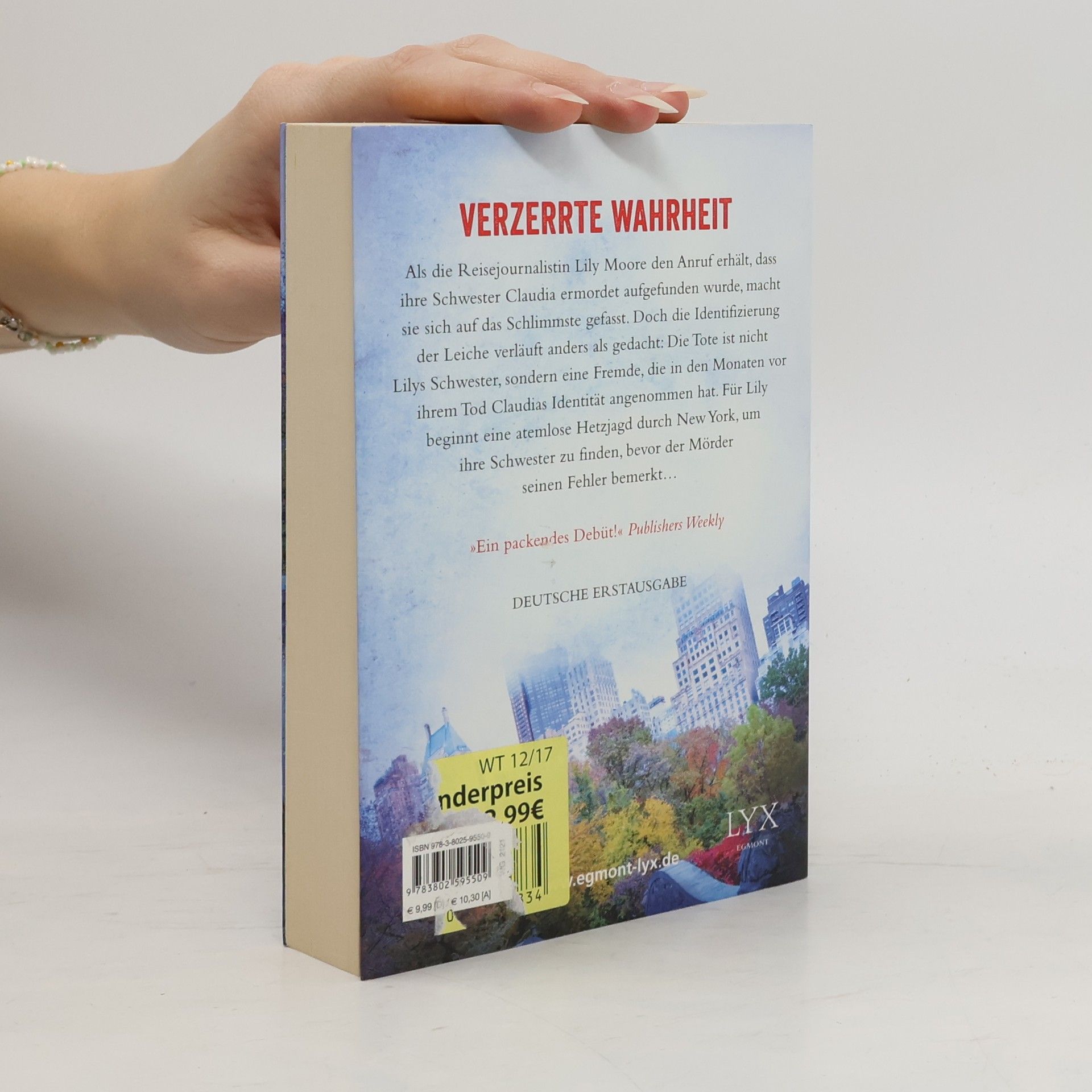 Als die Reisejournalistin Lily Moore den Anruf erhält, dass ihre Schwester Claudia ermordet aufgefunden wurde, macht sie sich auf das Schlimmste gefasst. Doch die Identifizierung der Leiche verläuft anders als gedacht: Die Tote ist nicht Lilys Schwester, sondern eine Fremde, die in den Monaten vor ihrem Tod Claudias Identität angenommen hat. Für Lily beginnt eine atemlose Hetzjagd durch New York, um ihre Schwester zu finden, bevor der Mörder hinter die gefährliche Verwechslung kommt -