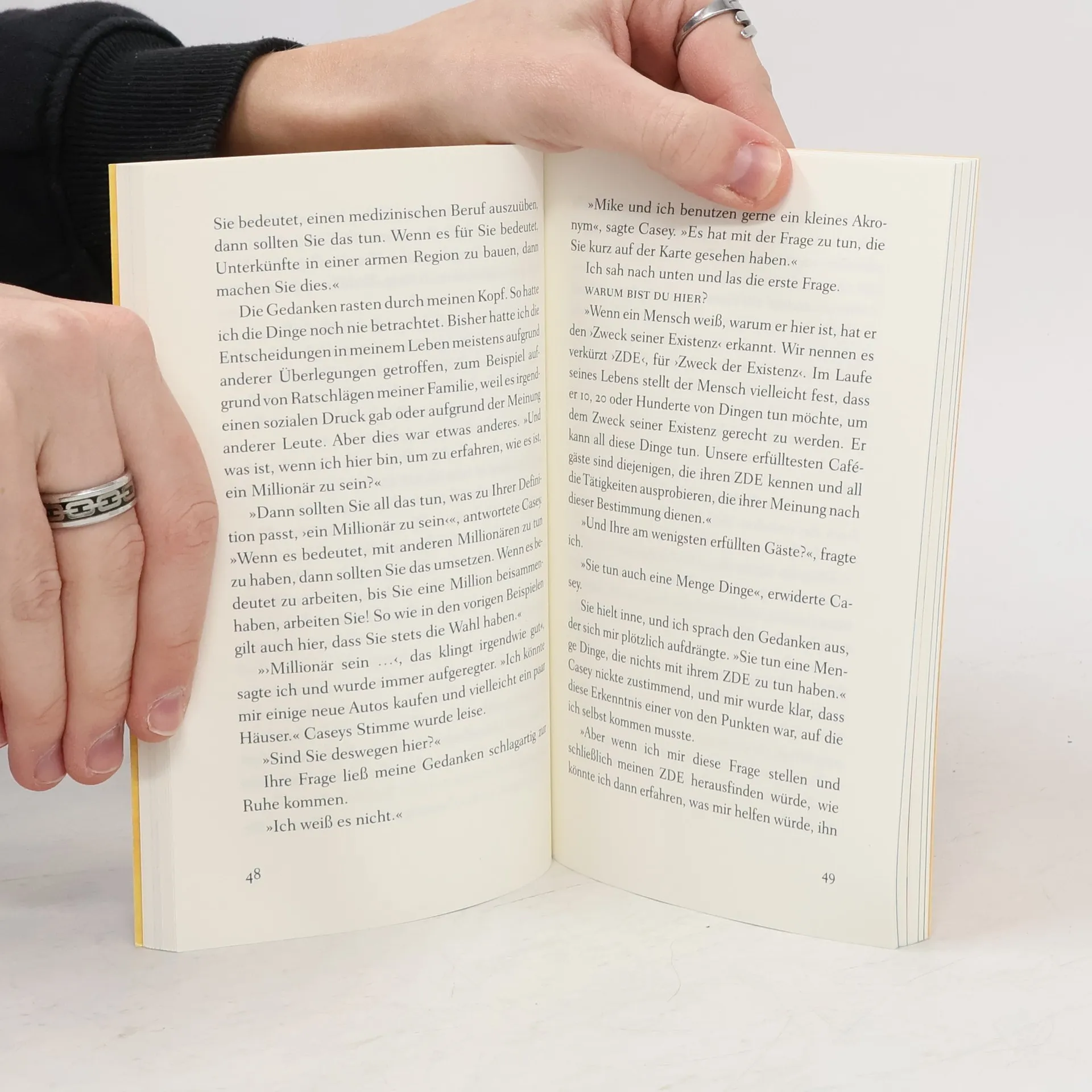 Humorvoll und anrührend Ein kleines Café mitten im Nirgendwo wird zum Wendepunkt im Leben von John, einem Werbemanager, der stets in Eile ist. Eigentlich will er nur kurz Rast machen, doch dann entdeckt er auf der Speisekarte neben dem Menü des Tages drei Fragen: »Warum bist du hier? Hast du Angst vor dem Tod? Führst du ein erfülltes Leben?« Wie seltsam – doch einmal neugierig geworden, will John mithilfe des Kochs, der Bedienung und eines Gastes dieses Geheimnis ergründen. Die Fragen nach dem Sinn des Lebens führen ihn gedanklich weit weg von seiner Vorstandsetage an die Meeresküste von Hawaii. Dabei verändert sich seine Einstellung zum Leben und zu seinen Beziehungen, und er erfährt, wie viel man von einer weisen grünen Meeresschildkröte lernen kann. So gerät diese Reise letztlich zu einer Reise zum eigenen Selbst. Ein ebenso lebendig geschriebenes, humorvolles wie anrührendes Buch. Durchgehend vierfarbig, mit Illustrationen von Root Leeb.