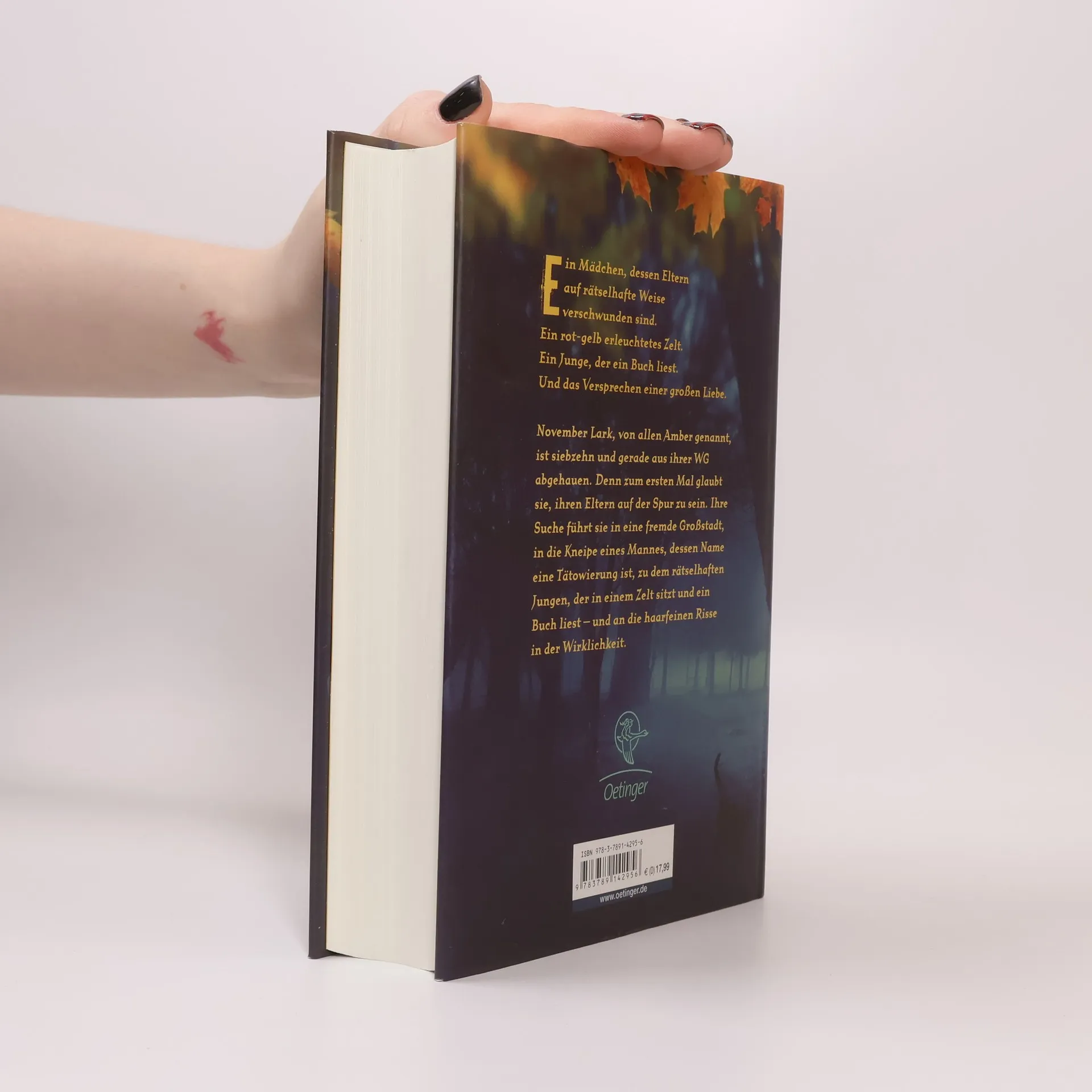 Schatten der Vergangenheit: ein Spiel um Leben und Tod. Kurz vor Ambers sechstem Geburtstag verschwanden ihre Eltern auf unerklärliche Weise. Jetzt ist Amber, die eigentlich November heißt, 17 Jahre alt und glaubt, eine Spur zu haben. Doch was hat es mit dem Jungen auf sich, der in dem erleuchteten Zelt ein Buch liest, sich aber in Luft auflöst, sobald sie sich ihm nähert? Welche Ziele verfolgt der Kneipenwirt, zu dem sie sich immer stärker hingezogen fühlt, und der immer für sie da zu sein scheint? Steckt er vielleicht sogar hinter den anonymen Drohungen, die sie erhält? Amber muss sich entscheiden: zwischen ihrer zerstörerischen Vergangenheit und dem Aufbruch in die Zukunft.