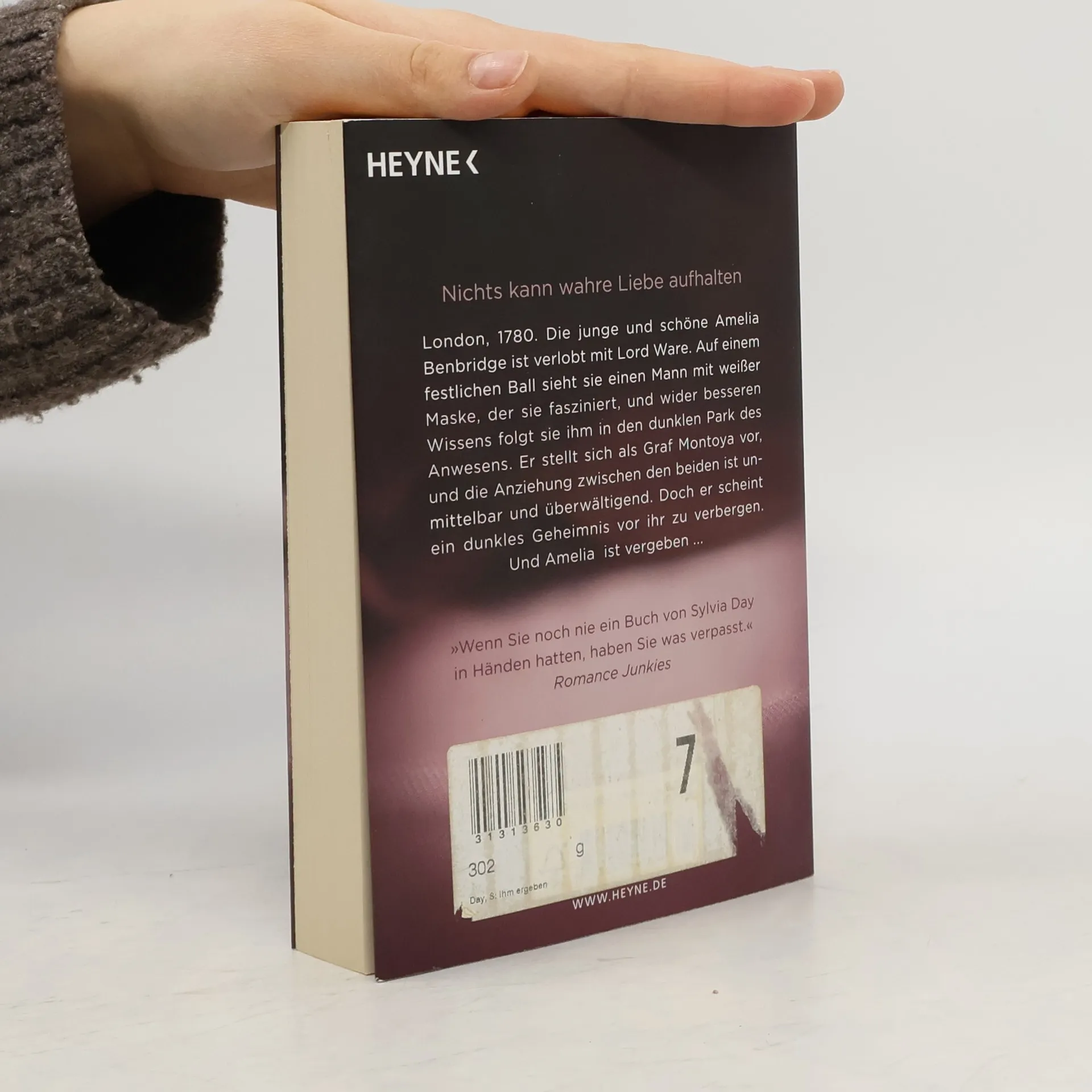London, 1780. Die junge und schöne Amelia Benbridge ist verlobt mit Lord Ware. Auf einem festlichen Ball sieht sie einen Mann mit weißer Maske, der sie fasziniert, und wider besseren Wissens folgt sie ihm in den dunklen Park des Anwesens. Er stellt sich als Graf Montoya vor, und die Anziehung zwischen den beiden ist unmittelbar und überwältigend. Doch er scheint ein dunkles Geheimnis vor ihr zu verbergen. Und Amelia ist vergeben ...
