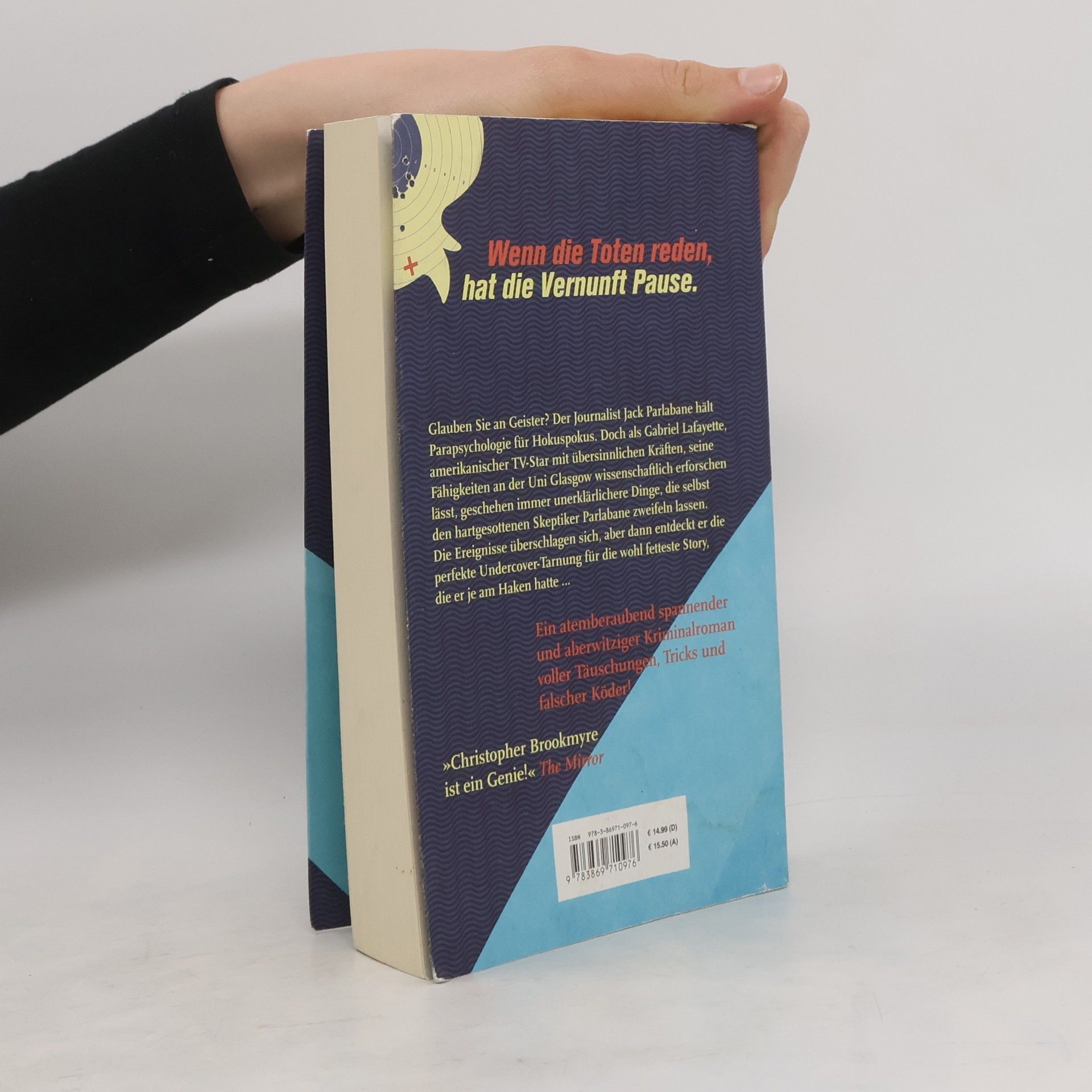 Brookmyre präsentiert einen skurrilen und wahnwitzig klugen Kriminalroman, der sich mit dem Aberglauben derjenigen beschäftigt, die nach dem Übersinnlichen suchen, und den Tricks derer, die dies ausnutzen. Nach einer beeindruckenden Séance mit der verstorbenen Frau des Möbeltycoons Lemuel plant dieser, an der Uni Glasgow ein Institut zur Untersuchung paranormaler Phänomene zu gründen. Zuvor soll Gabriel Lafayette, ein amerikanischer TV-Star mit besonderen „Gaben“, seine Fähigkeiten unter strenger Kontrolle beweisen. Dies könnte eine wissenschaftliche Sensation von historischem Ausmaß sein, doch Journalist Jack Parlabane, bekannt für seine kritische Haltung gegenüber korrupten Politikern und betrügerischen Firmenchefs, hegt Zweifel. Er hält Geisterglauben und Parapsychologie für Unsinn, doch je mehr unerklärliche Dinge geschehen, desto mehr beginnt er an seinen Überzeugungen zu zweifeln. Die Ereignisse überschlagen sich, und Jack findet die perfekte Undercover-Tarnung für die größte Story seiner Karriere. Brookmyre überrascht mit Täuschungsmanövern, Tricks und falschen Ködern, bis man fast bereit ist, an alles zu glauben, nur um dann elegant den Stöpsel zu ziehen.