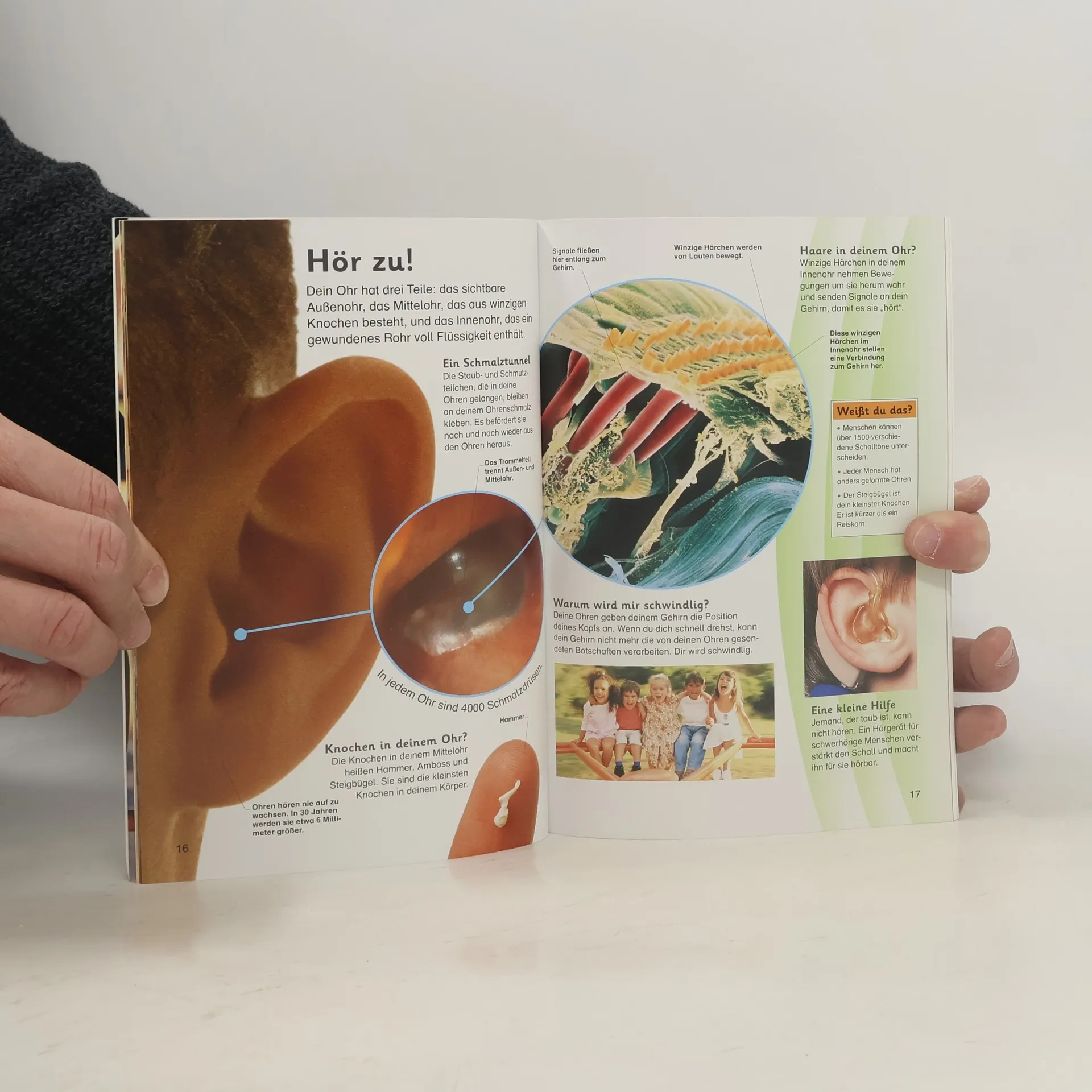 Lesen, staunen, mitmachen – das ist das Motto von memo Kids! Was ist ein Bluterguss? Warum bekomme ich Schluckauf? In Band 9 der Wissensreihe für Erstleser dreht sich alles um den Menschen. Kurze, lebendige Texte erzählen Spannendes über unseren Körper und wie er funktioniert. Faszinierende Bilder zum Staunen zeigen unsere Organe, Sinneszellen und vieles mehr. Die altersgerecht aufbereiteten Informationen sind für Leseanfänger einfach verständlich, so dass auch schwierige Zusammenhänge deutlich werden. Viele bunte Fotografien und Illustrationen veranschaulichen das Thema und helfen, das Gelesene zu begreifen. Wissenstests, Bilderrätsel und ein Gehirn-Labyrinth regen zum Mitmachen an und vertiefen spielerisch das Gelernte. Ein Glossar am Ende des Buches erklärt schwierige Wörter und »Weißt du das?«-Kästen heben besonders interessante Fakten hervor. Durch die optimale Ausgewogenheit von Bild und Text ist »memo Kids – Der Körper« ideal zum Vor- oder Selberlesen geeignet. Wissen zum Sammeln: Alle memo Kids Bände sind nummeriert und sind mit einem durchgängigen Rückendesign gestaltet – so wächst mit jedem neuen Band im Bücherregal ein cooles Motiv mit! Dieses Buch ist bei Antolin. de verfügbar.