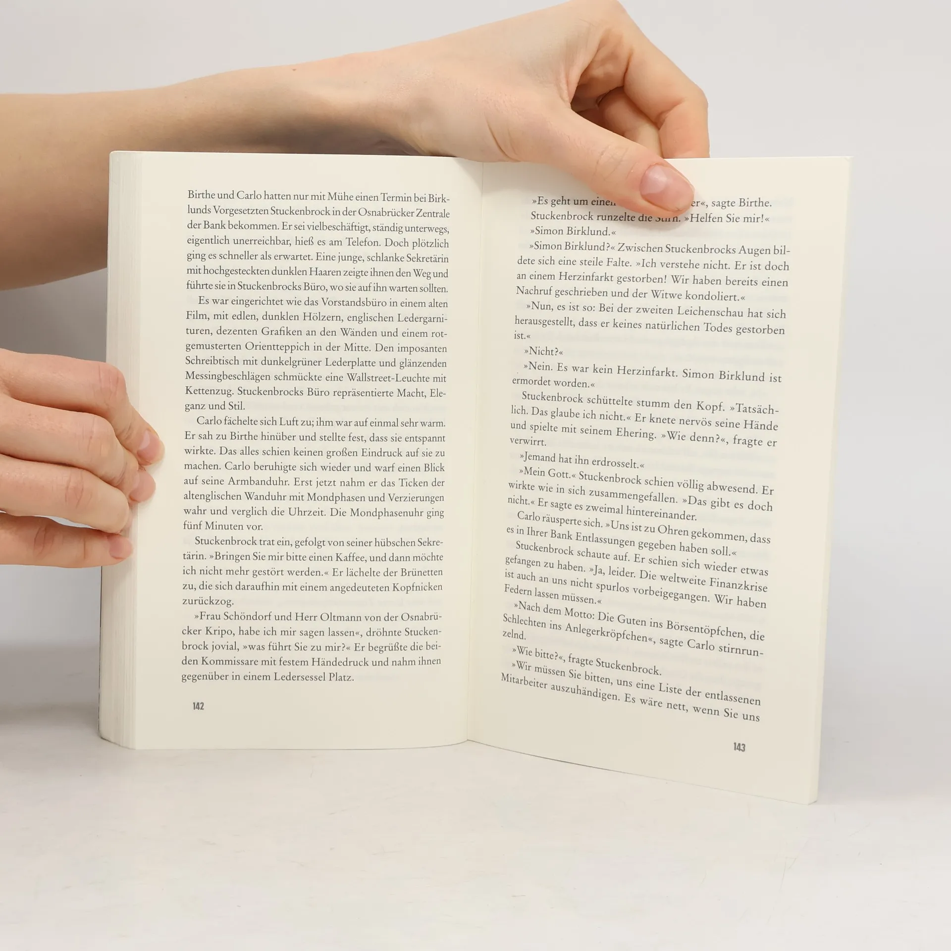 In einer Osnabrücker Villa wird der Banker Simon Birklund ermordet. Kommissarin Birthe Schöndorf und ihr neuer Kollege Carlo Oltmann folgen einer Spur, die sie direkt in die Mafiakreise der Bankenmetropole Frankfurt führt. In diesen Sumpf geriet auch der bodenständige Mario Roggenkamp, ein von Birklund um sein Geld gebrachter Schreiner. Durch den Banker verlor er sein gesamtes Vermögen, was er vor seiner Familie verheimlicht. Hat er sich an Birklund gerächt?