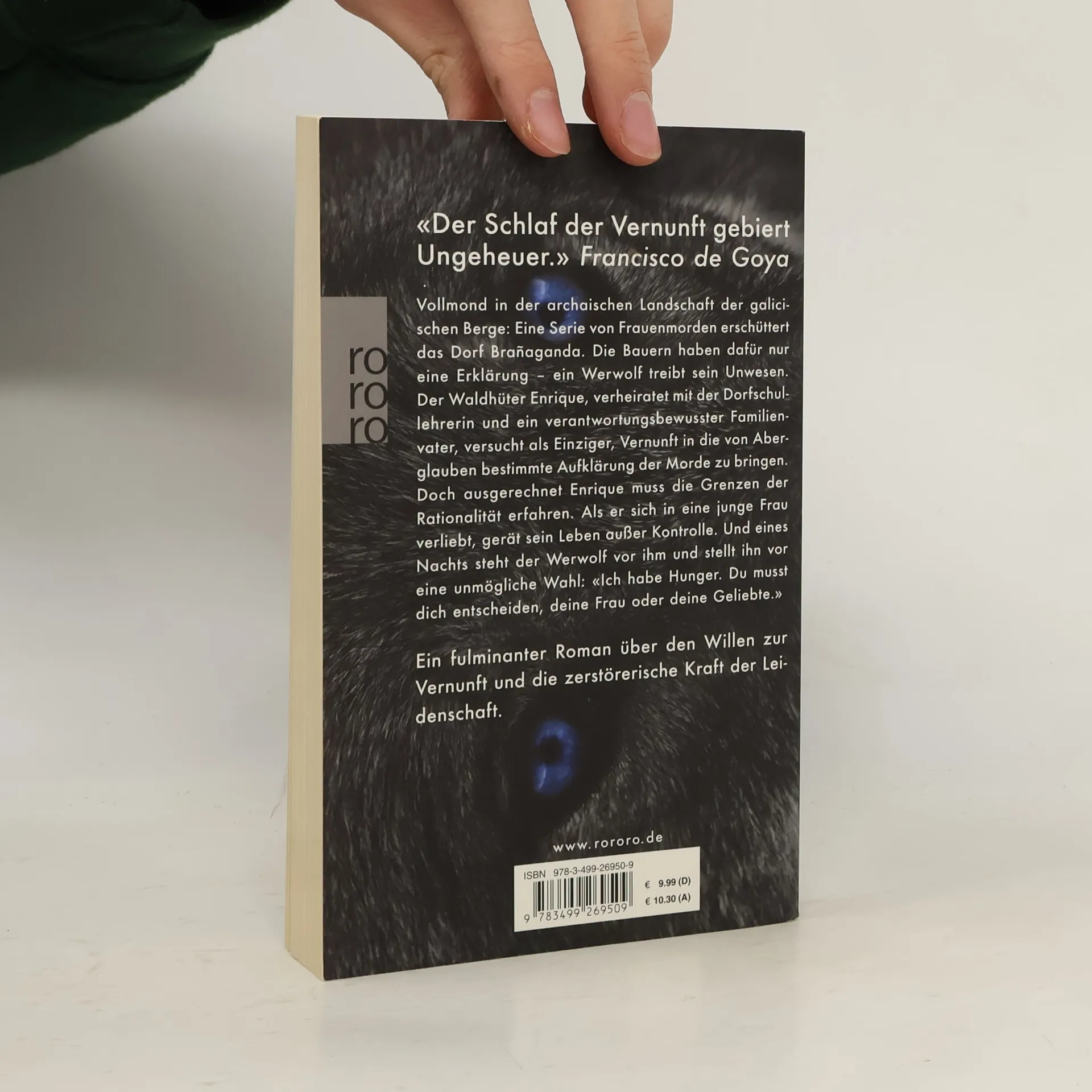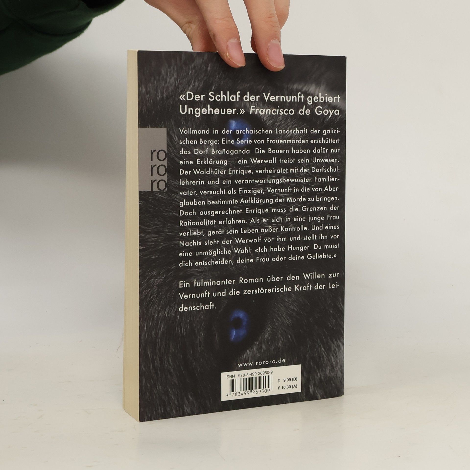 Vollmond in der archaischen Landschaft der galicischen Berge: Eine Serie von Frauenmorden erschüttert das Dorf Brañaganda. Die Bauern haben dafür nur eine Erklärung – ein Werwolf treibt sein Unwesen. Der Waldhüter Enrique, verheiratet mit der Dorfschullehrerin und ein verantwortungsbewusster Familienvater, versucht als einziger, Vernunft in die von Aberglauben bestimmte Aufklärung der Morde zu bringen. Doch ausgerechnet Enrique muss die Grenzen der Rationalität erfahren. Als er sich in eine junge Frau verliebt, gerät sein Leben außer Kontrolle. Und eines Nachts steht der Werwolf vor ihm und stellt ihn vor eine unmögliche Wahl: «Ich habe Hunger. Du musst dich entscheiden, deine Frau oder deine Geliebte.» Ein fulminanter Roman über den Willen zur Vernunft und die zerstörerische Kraft der Leidenschaft.