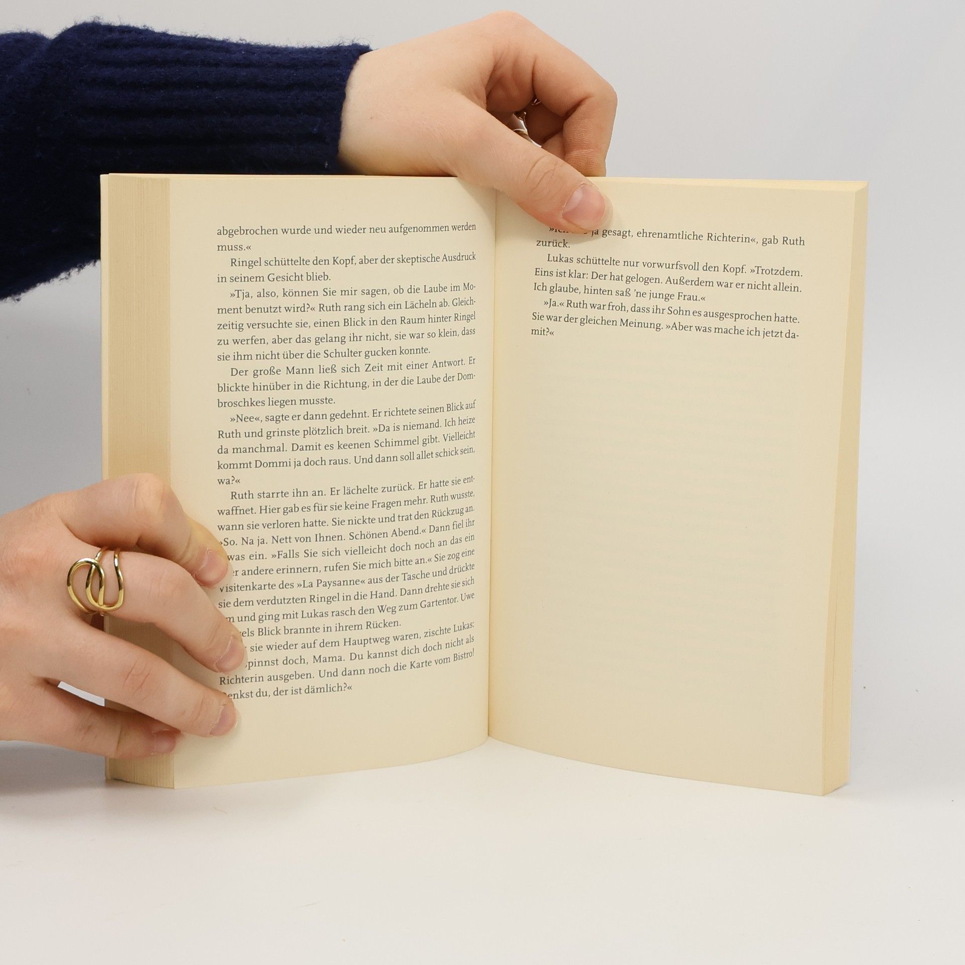 Ein Jahr ist Ruth Holländer bereits Schöffin, aber dieses Ehedrama erschüttert sie besonders: Rentner Jürgen Dombroschke ist angeklagt, seine an Parkinson erkrankte Frau vergiftet zu haben. Ein deprimierender Fall, bei dem alles klar zu sein scheint. Doch Ruth spürt, dass ein Puzzleteil fehlt. Hin und her gerissen zwischen Schöffinnendasein und Privatleben, hört Ruth sich – gegen den Rat ihres Freundes, Staatsanwalt Hannes Eisenrauch – ein bisschen um. Auch in Dombroschkes Schrebergarten. Und entdeckt die dramatische Wahrheit ...