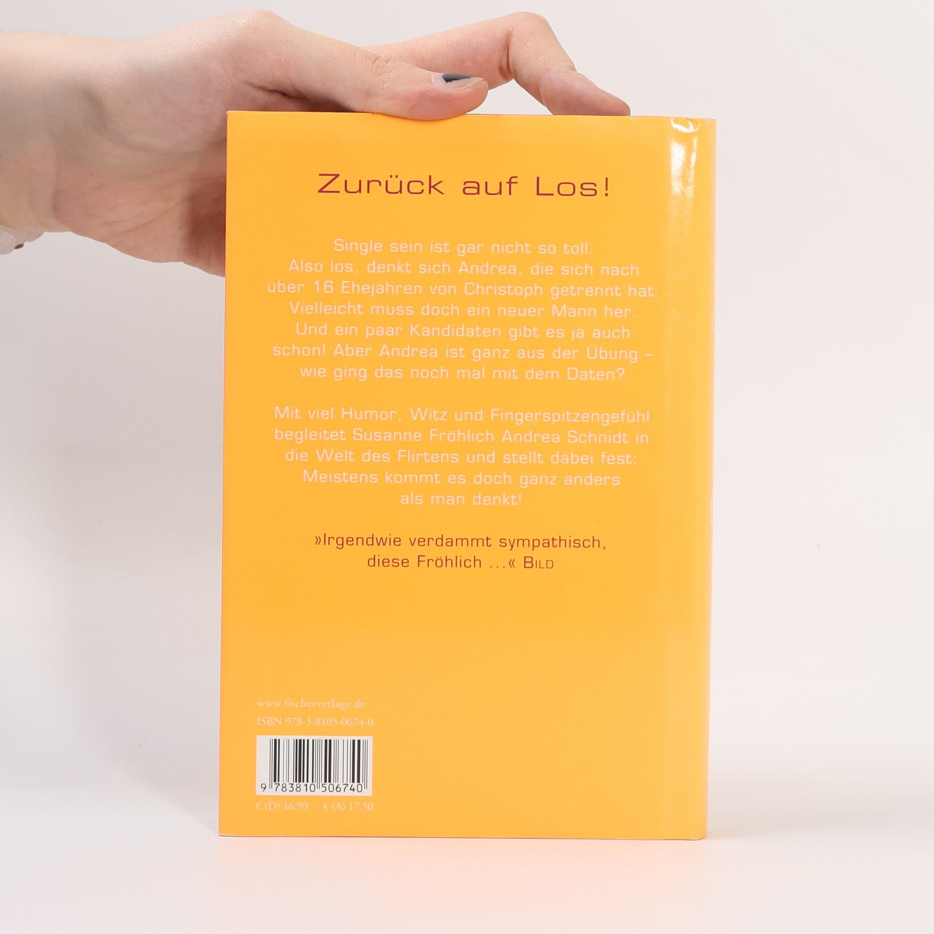 Der neue Roman von Bestsellerautorin Susanne Fröhlich Zurück auf Los - Andrea Schnidt auf Männersuche! Andrea hat es ja so gewollt: Sie und Christoph sind getrennt. Doch irgendwie hat Andrea sich das doch anders vorgestellt. Nicht nur ihr verwitweter Schwiegervater Rudi, sondern auch ihr Ex haben beide gleich schon wieder eine Neue. So ist das eben bei den Männern – sie sind nicht gerne alleine. Aber Andrea irgendwie auch nicht wirklich. Also los, denkt sich Andrea. Ein neuer Mann muss her! Und so macht sich Andrea auf die Suche: Kontaktanzeigen, Internet, Ü-40-Partys und nicht zu vergessen – ihre kuppelnden Freundinnen. Aber Andrea ist ganz aus der Übung – wie ging das noch mal mit dem Daten? Mit viel Humor, Witz und Fingerspitzengefühl begleitet Susanne Fröhlich Andrea Schnidt in die Welt des Datings und stellt dabei fest: Manchmal kommt es doch ganz anders als man denkt! 'Irgendwie verdammt sympathisch, diese Fröhlich.' Bild