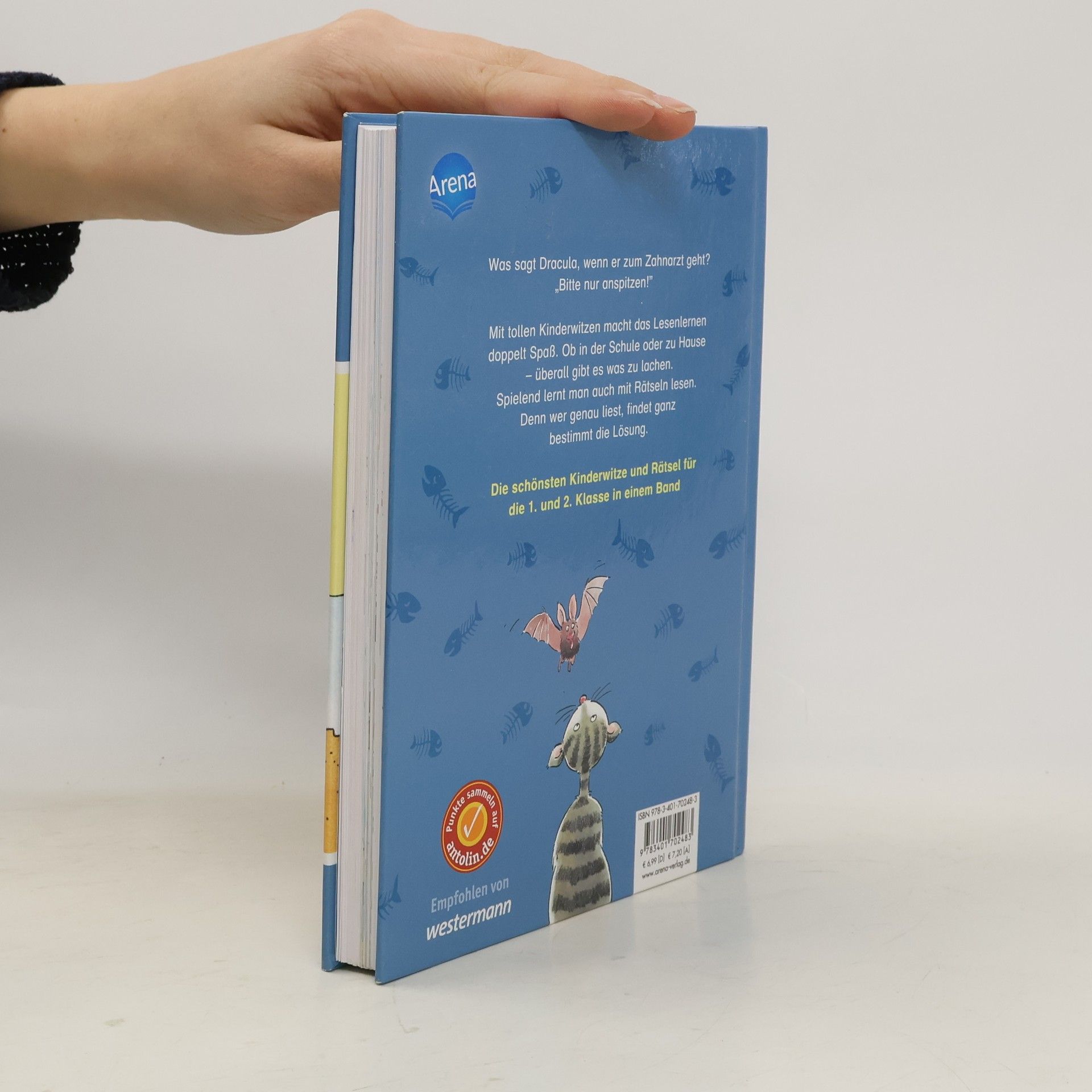 Was sagt Dracula, wenn er zum Zahnarzt geht? „Bitte nur anspitzen!“ Mit tollen Kinderwitzen macht das Lesenlernen doppelt Spaß. Ob in der Schule oder zu Hause - überall gibt es etwas zu lachen. Spielend lernt man auch mit Rätseln lesen. Denn wer genau liest, findet ganz bestimmt die Lösung. Die schönsten Kinderwitze und Rätsel für Erstleser in einem Band.