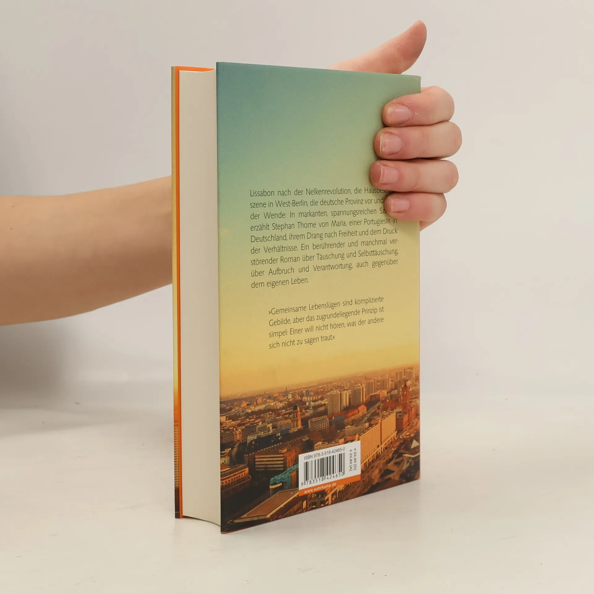 Maria ist achtzehn und möchte raus aus Portugal. Mitte der Siebzigerjahre bietet das Land einer jungen Frau wenig Perspektiven. Maria aber will nicht heiraten und Kinder kriegen, sie will mehr vom Leben. Als das neue Jahrzehnt anbricht, geht sie nach Berlin, beginnt ein Studium und eine Beziehung mit einem rebellischen Theatermacher, die bald scheitert. Allen Plänen vom unabhängigen Leben zum Trotz findet sich Maria schließlich als Ehefrau und Mutter in der nordrhein-westfälischen Provinz wieder und schaut ihrem Mann Hartmut beim Karrieremachen zu. Lang arrangiert sie sich mit den Verhältnissen, aber als die Tochter erwachsen und auf dem Sprung aus dem Haus ist, trifft Maria eine Entscheidung. Lissabon nach der Nelkenrevolution, die Hausbesetzerszene in Westberlin, die deutsche Provinz vor und nach der Wende: Stephan Thome erzählt in markanten, spannungsreichen Szenen eine bekannte Geschichte neu und völlig anders. Gegenspiel ist ein berührender und manchmal verstörender Roman über Täuschung und Selbsttäuschung, über Aufbruch und Verantwortung, auch gegenüber dem eigenen Leben – ein Roman voller Empathie und psychologischer Raffinesse.
