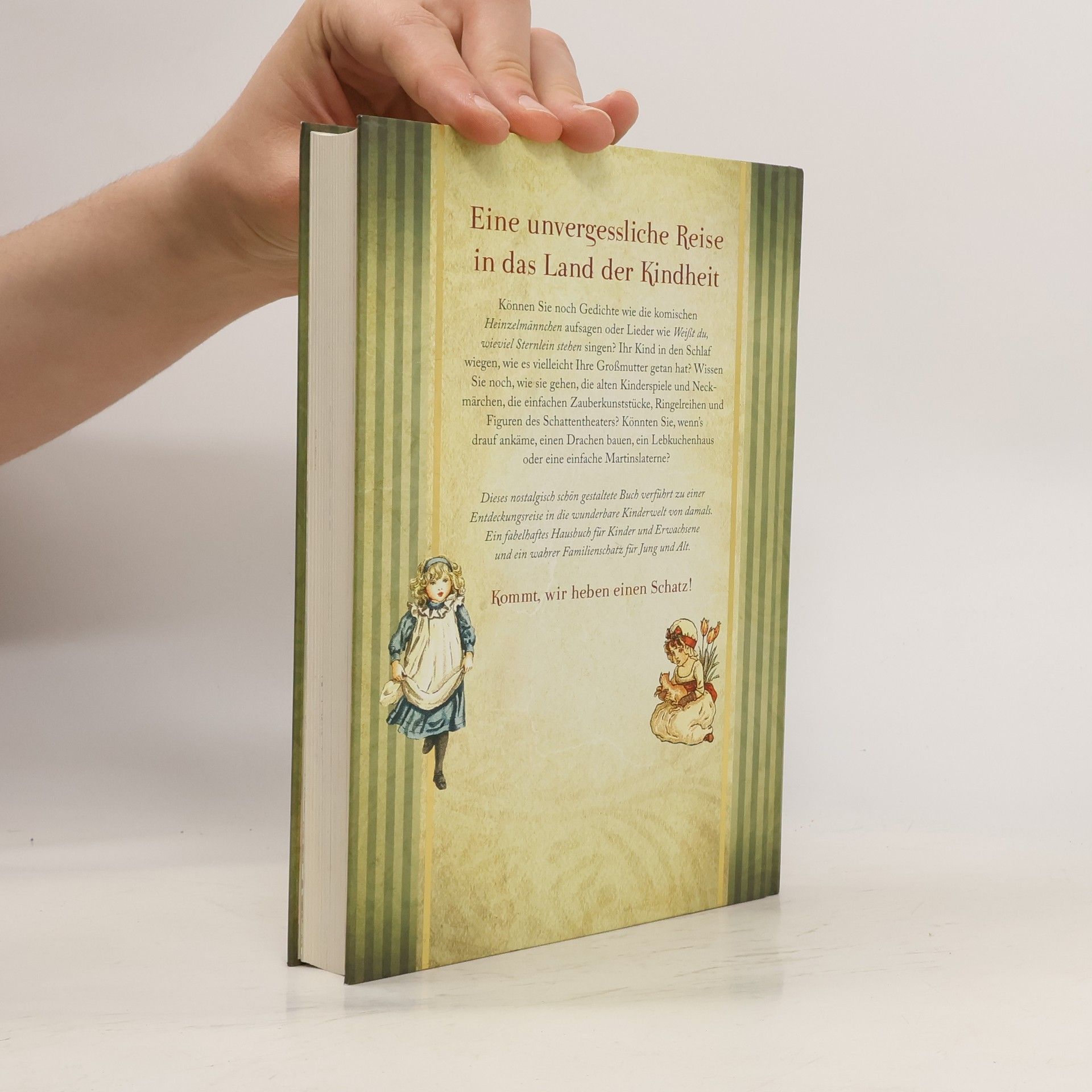 Können Sie noch Gedichte wie Das Schlaraffenland oder die komischen Heinzelmännchen von August Kopisch aufsagen? Erinnern Sie sich an die Kinderlieder von damals, die Ihnen vorgesungen wurden und die Sie dann selbst gesungen haben, an Maikäfer flieg und Weißt du, wieviel Sternlein stehn? Sind Sie noch imstande, Ihr Kind in den Schlaf zu singen, mit Wiegenliedern, wie es vielleicht Ihre Großmutter getan hat? Wissen Sie noch, wie sie gehen, die alten Kinderspiele, die einfachen Zauberkunststücke, Tanz- und Ringelspiele, die Figuren des Schattentheaters? Könnten Sie, wenn’s drauf ankäme, einen Drachen bauen, den man im Herbst steigen lassen kann, oder eine einfache Martinslaterne? Und was ist mit den einst so bekannten und beliebten Abzählversen, Zungenbrechern und Rätseln, mit denen Sie ganze verregnete Nachmittage und Kindergeburtstage zugebracht haben? Rote Kirschen ess ich gern ist ein fabelhaftes Hausbuch für Kinder und Erwachsene und ein Schatz für Jung und Alt. Eine unvergessliche Reise in die Kindheit mit all den Facetten, wie ein Kaleidoskop sie zeigt, das der Großvater aus ein paar bunten Glassplittern gebaut hat. In dieser Vollständigkeit und Anschaulichkeit darf es als einmalig bezeichnet werden. Dieses wunderschön nostalgisch gestaltete Buch verführt Sie zu einer Entdeckungsreise in die wunderbare Kinderwelt von damals. In dieser einmaligen Sammlung findet man alles, was die Tradition den Kindern manchmal über Jahrhunderte hinweg vermittelt hat.