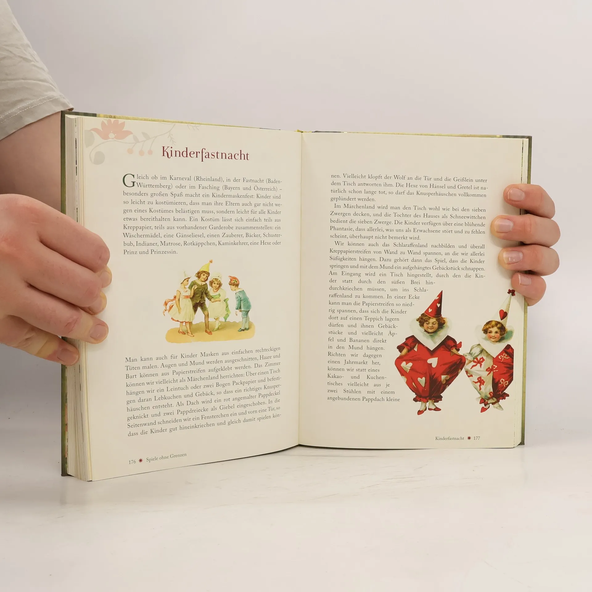 Können Sie noch Gedichte wie Das Schlaraffenland oder die komischen Heinzelmännchen von August Kopisch aufsagen? Erinnern Sie sich an die Kinderlieder von damals, die Ihnen vorgesungen wurden und die Sie dann selbst gesungen haben, an Maikäfer flieg und Weißt du, wieviel Sternlein stehn? Sind Sie noch imstande, Ihr Kind in den Schlaf zu singen, mit Wiegenliedern, wie es vielleicht Ihre Großmutter getan hat? Wissen Sie noch, wie sie gehen, die alten Kinderspiele, die einfachen Zauberkunststücke, Tanz- und Ringelspiele, die Figuren des Schattentheaters? Könnten Sie, wenn’s drauf ankäme, einen Drachen bauen, den man im Herbst steigen lassen kann, oder eine einfache Martinslaterne? Und was ist mit den einst so bekannten und beliebten Abzählversen, Zungenbrechern und Rätseln, mit denen Sie ganze verregnete Nachmittage und Kindergeburtstage zugebracht haben? Rote Kirschen ess ich gern ist ein fabelhaftes Hausbuch für Kinder und Erwachsene und ein Schatz für Jung und Alt. Eine unvergessliche Reise in die Kindheit mit all den Facetten, wie ein Kaleidoskop sie zeigt, das der Großvater aus ein paar bunten Glassplittern gebaut hat. In dieser Vollständigkeit und Anschaulichkeit darf es als einmalig bezeichnet werden. Dieses wunderschön nostalgisch gestaltete Buch verführt Sie zu einer Entdeckungsreise in die wunderbare Kinderwelt von damals. In dieser einmaligen Sammlung findet man alles, was die Tradition den Kindern manchmal über Jahrhunderte hinweg vermittelt hat.