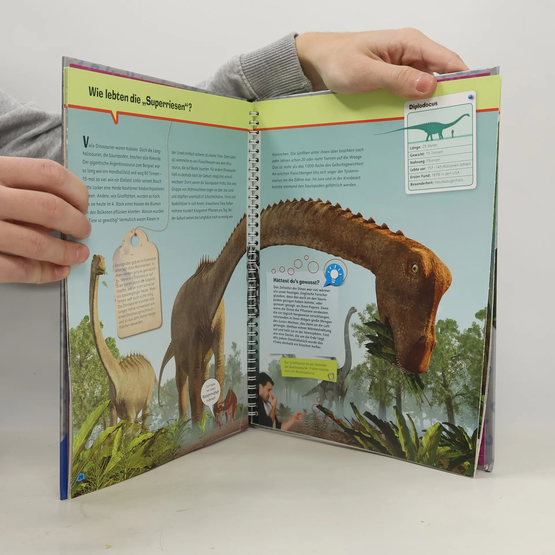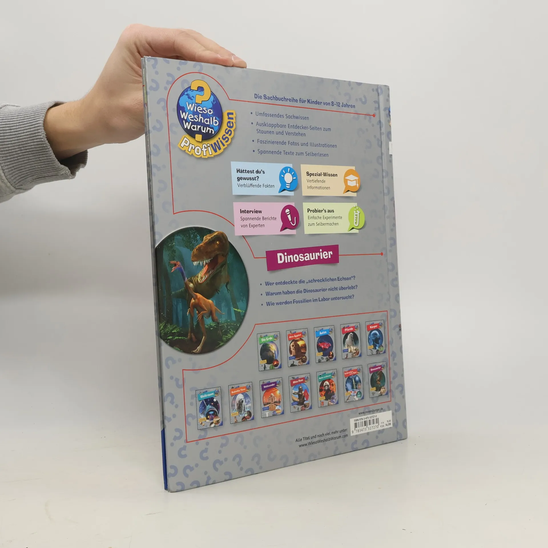 Superrealistische 3-D-Illustrationen erwecken die Riesen der Urzeit zum Leben. Nach einem Einstieg in den Dinosaurier-Stammbaum und die Erdzeitalter erfahren Leser Interessantes über Fress- und Jagdverhalten, Fortbewegung und Brutpflege der Dinosaurier. Neueste wissenschaftliche Erkenntnisse beantworten zentrale Fragen wie: Warum sind die Dinosaurier ausgestorben? Wer gab ihnen ihren Namen? Und wie wissen wir all das? Echte Dinosaurierexperten und Paläontologen gewähren in Interviews Einblicke in ihre spannende Forschungsarbeit. Die Sachbuchreihe für Kinder von 8–12 Jahren bietet einen tiefen Einblick in Themen wie das Leben der Dinos, die Technik von Rennwagen und das Weltall. Mit modernem Look, starken Bildern und verblüffenden Fakten wird Sachwissen lebendig und verständlich vermittelt. Witzige Comics lockern die Seiten auf, während Experten in Interviews ihre Perspektiven teilen. Spezial-Wissen-Kästen bieten tiefere Einblicke, und zahlreiche Anleitungen für Experimente laden zum Ausprobieren ein. Ausklappbare Entdeckerseiten in jedem Band bieten zusätzliches Material zum Staunen. Ein unterhaltsamer Begleiter durch verschiedene Wissenswelten.