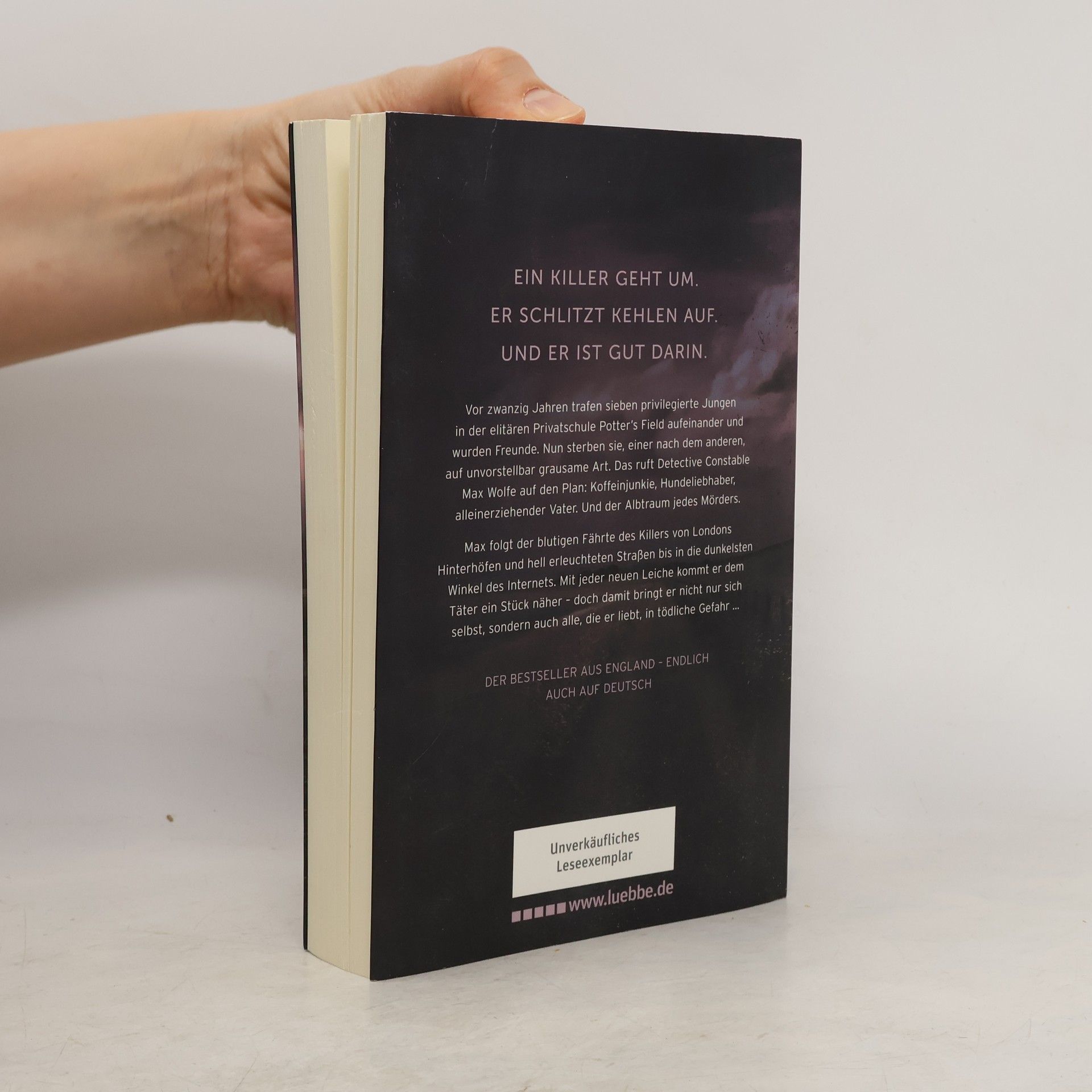 Vor zwanzig Jahren trafen sieben privilegierte Jungen in der elitären Privatschule Potter’s Field aufeinander und wurden Freunde. Nun sterben sie, einer nach dem anderen, auf unvorstellbar grausame Art. Das ruft Detective Constable Max Wolfe auf den Plan: Koffeinjunkie, Hundeliebhaber, alleinerziehender Vater. Und der Albtraum jedes Mörders. Max folgt der blutigen Fährte des Killers von Londons Hinterhöfen und hell erleuchteten Straßen bis in die dunkelsten Winkel des Internets. Mit jeder neuen Leiche kommt er dem Täter ein Stück näher - doch damit bringt er nicht nur sich selbst, sondern auch alle, die er liebt, in tödliche Gefahr ...