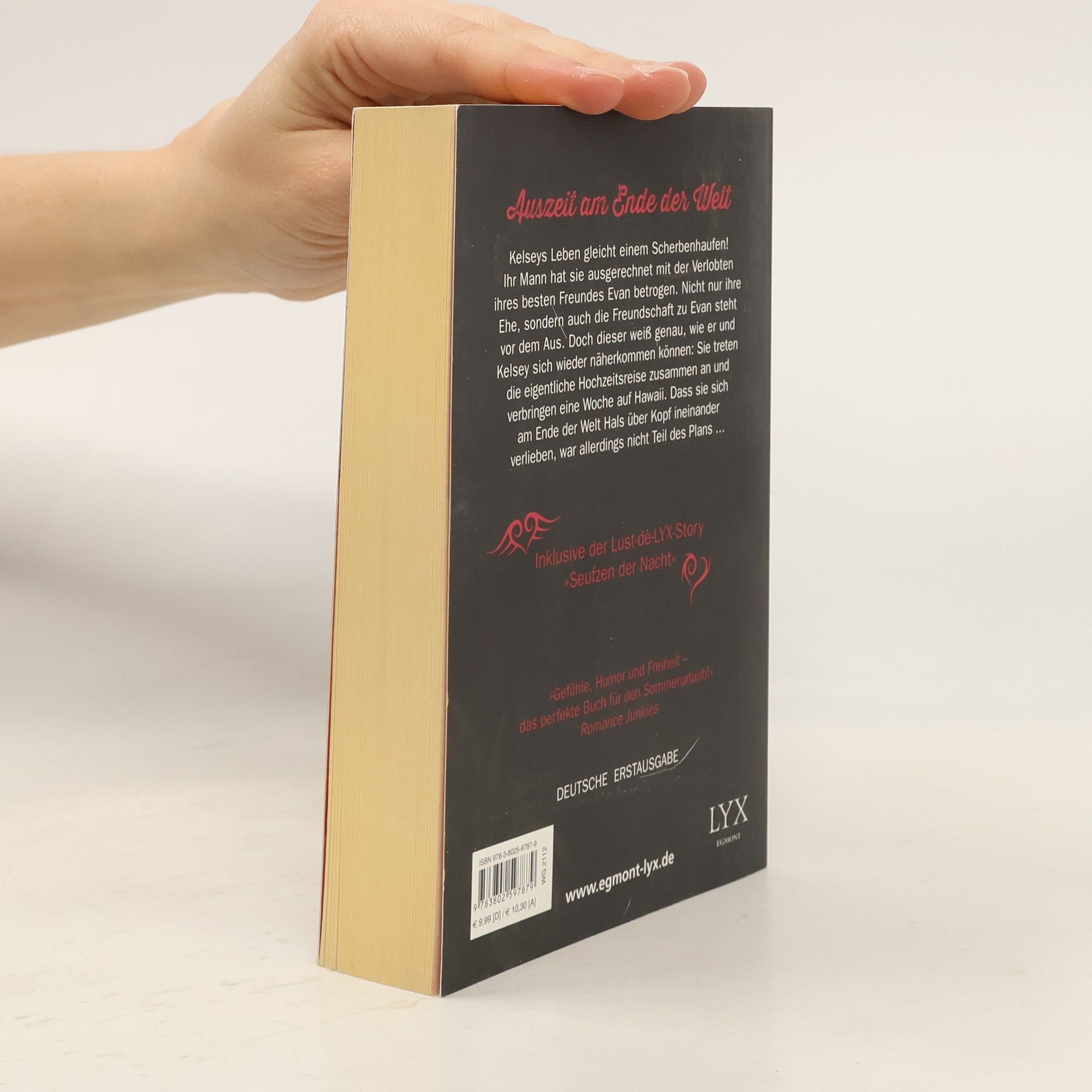 Kelseys Leben gleicht einem Scherbenhaufen! Ihr Mann hat sie ausgerechnet mit der Verlobten ihres besten Freundes Evan betrogen. Nicht nur ihre Ehe, sondern auch die Freundschaft zu Evan steht vor dem Aus. Doch dieser weiß genau, wie er und Kelsey sich wieder näher kommen können: Sie treten die eigentliche Hochzeitsreise zusammen an und verbringen eine Woche auf Hawaii. Dass sie sich am Ende der Welt Hals über Kopf ineinander verlieben, war allerdings nicht Teil des Plans - Inklusive der Lust-de-LYX-Story „Seufzen der Nacht“ „Eine berührende, leidenschaftliche Geschichte über eine Freundschaft, die so viel mehr sein sollte. Gefühle, Humor und Freiheit - das perfekte Buch für den Sommerurlaub!“ Romance Junkies