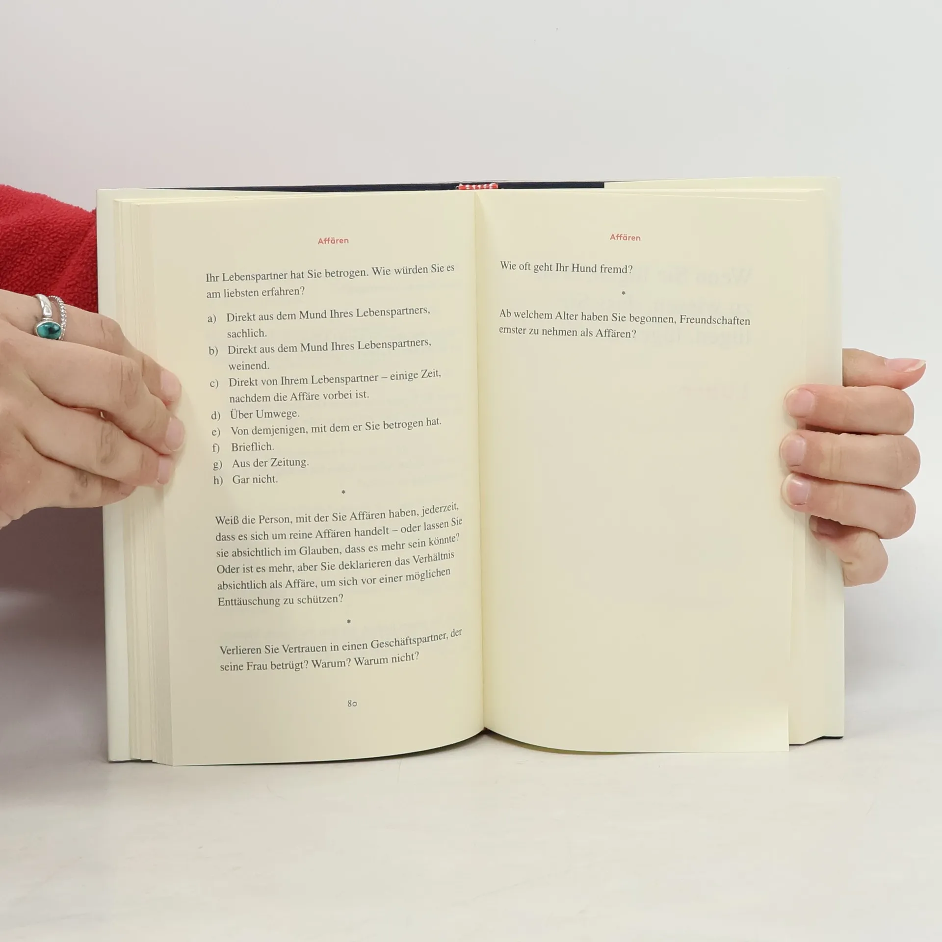 Fragen, denen sich jeder mindestens einmal im Leben stellen muss. Zur diskreten Selbsterforschung oder als amüsantes Gesellschaftsspiel. Fragen, die belustigen, die unter die Haut gehen, unerwartete, hinterhältige Fragen, die sich ihrerseits in Frage stellen wie in einem Kaleidoskop – und garantiert anregen: zum Lauf der Welt, zu Liebe, Sex, Erfolg, Karriere, Alter, Tod, Gott und Glück.