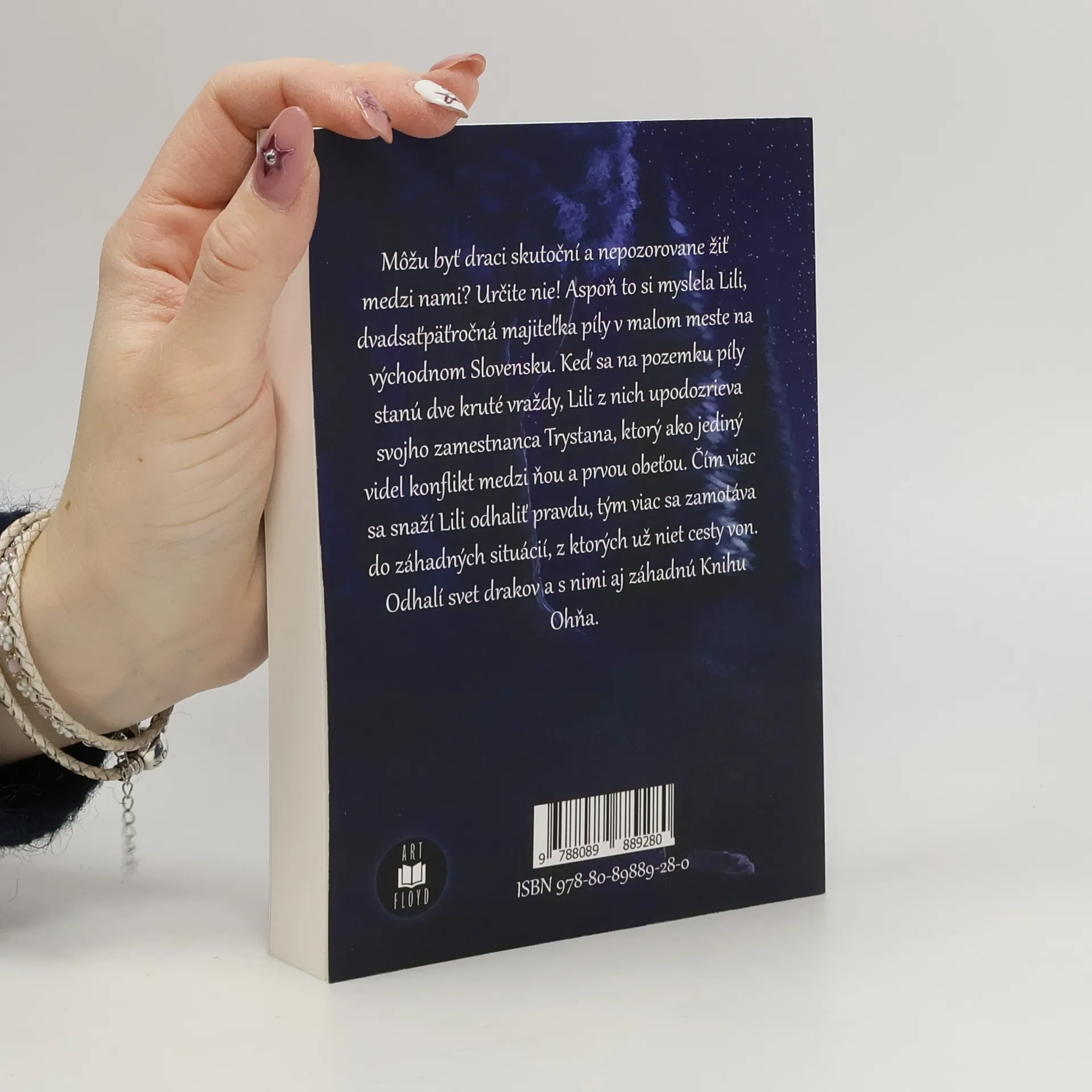 Môžu byť draci skutoční a nepozorovane žiť medzi nami? Určite nie! Aspoň to si myslela Lili, dvadsaťpäťročná majiteľka píly v malom meste na východnom Slovensku. Keď sa na pozemku píly stanú dve kruté vraždy, Lili z nich upodozrieva svojho zamestnanca Trystana, ktorý ako jediný videl konflikt medzi ňou a prvou obeťou. Čím viac sa snaží Lili odhaliť pravdu, tým viac sa zamotáva do záhadných situácií, z ktorých už niet cesty von. Odhalí svet drakov a s nimi aj záhadnú Knihu Ohňa.