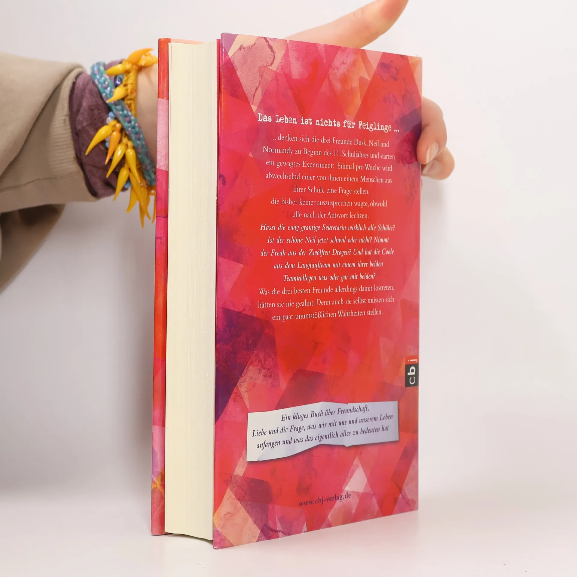 Ein Häppchen Wahrheit gefällig? Oder darf's doch ein bisschen mehr sein? Das Leben ist nichts für Feiglinge...… denken sich die drei Freunde Dusk, Neil und Normandy, zu Beginn des 11. Schuljahres und starten ein gewagtes Experiment: Einmal jede Woche wird abwechselnd einer der drei einem Menschen aus ihrer Schule eine Frage stellen, die bisher keiner auszusprechen wagte, obwohl alle nach der Antwort lechzen. Hasst die ewig grantige Sekretärin wirklich alle Schüler, ist der schöne Tyler jetzt schwul oder nicht, nimmt der Freak aus der 12. Drogen und hat die Coole aus dem Langlaufteam mit einem ihrer beiden Teamkollegen was oder gar mit beiden? Was die drei besten Freunde allerdings damit lostreten, hätten sie nie geahnt. Ein kluges Buch über Freundschaft, Liebe und die Frage, was wir mit uns und unserem Leben anfangen und, was das eigentlich alles zu bedeuten hat.