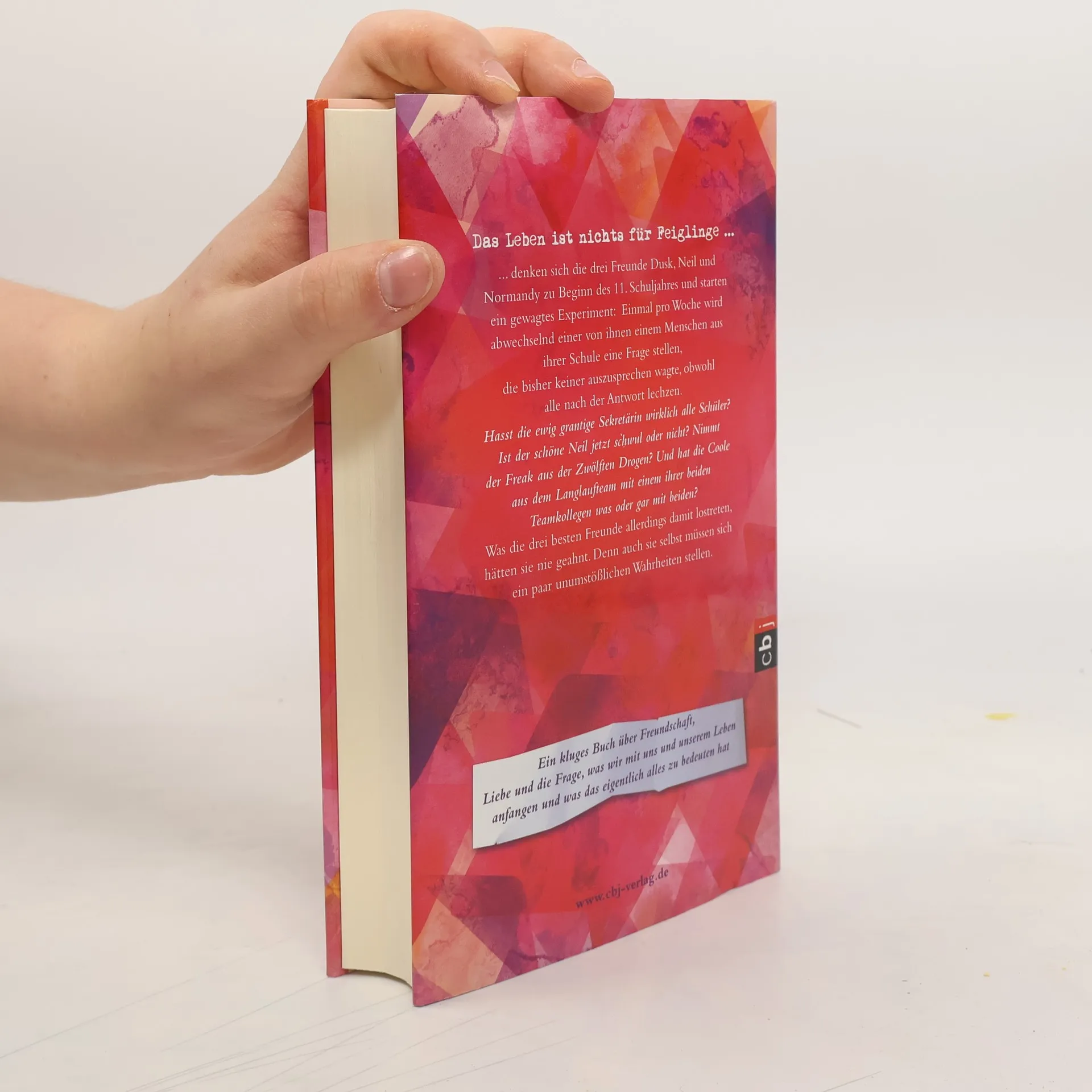 Ein Häppchen Wahrheit gefällig? Oder darf's doch ein bisschen mehr sein? Das Leben ist nichts für Feiglinge...… denken sich die drei Freunde Dusk, Neil und Normandy, zu Beginn des 11. Schuljahres und starten ein gewagtes Experiment: Einmal jede Woche wird abwechselnd einer der drei einem Menschen aus ihrer Schule eine Frage stellen, die bisher keiner auszusprechen wagte, obwohl alle nach der Antwort lechzen. Hasst die ewig grantige Sekretärin wirklich alle Schüler, ist der schöne Tyler jetzt schwul oder nicht, nimmt der Freak aus der 12. Drogen und hat die Coole aus dem Langlaufteam mit einem ihrer beiden Teamkollegen was oder gar mit beiden? Was die drei besten Freunde allerdings damit lostreten, hätten sie nie geahnt. Ein kluges Buch über Freundschaft, Liebe und die Frage, was wir mit uns und unserem Leben anfangen und, was das eigentlich alles zu bedeuten hat.
