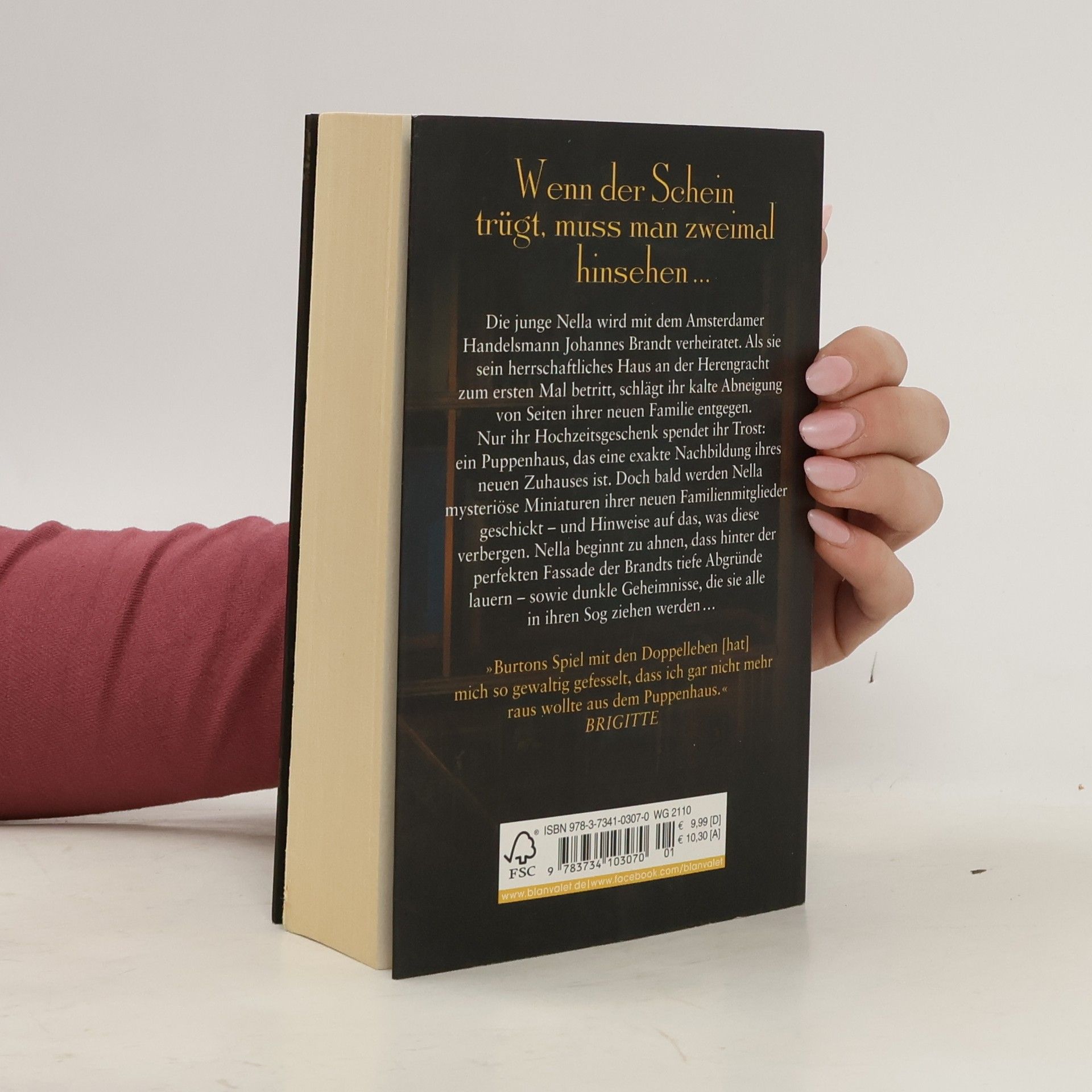 Wenn der Schein trügt, muss man zweimal hinsehen Die junge Nella wird mit dem Amsterdamer Handelsmann Johannes Brandt verheiratet. Als sie sein herrschaftliches Haus an der Herengracht zum ersten Mal betritt, schlägt ihr kalte Abneigung von Seiten ihrer neuen Familie entgegen. Nur ihr Hochzeitsgeschenk spendet ihr Trost: ein Puppenhaus, das eine exakte Nachbildung ihres neuen Zuhauses ist. Doch bald werden Nella mysteriöse kleine Nachbildungen ihrer neuen Familienmitglieder geschickt – und Hinweise auf das, was diese verbergen. Nella beginnt zu ahnen, dass sich hinter der perfekten Fassade der Brandts tiefe Abgründe verbergen – sowie dunkle Geheimnisse, die sie alle in ihren Sog ziehen werden …