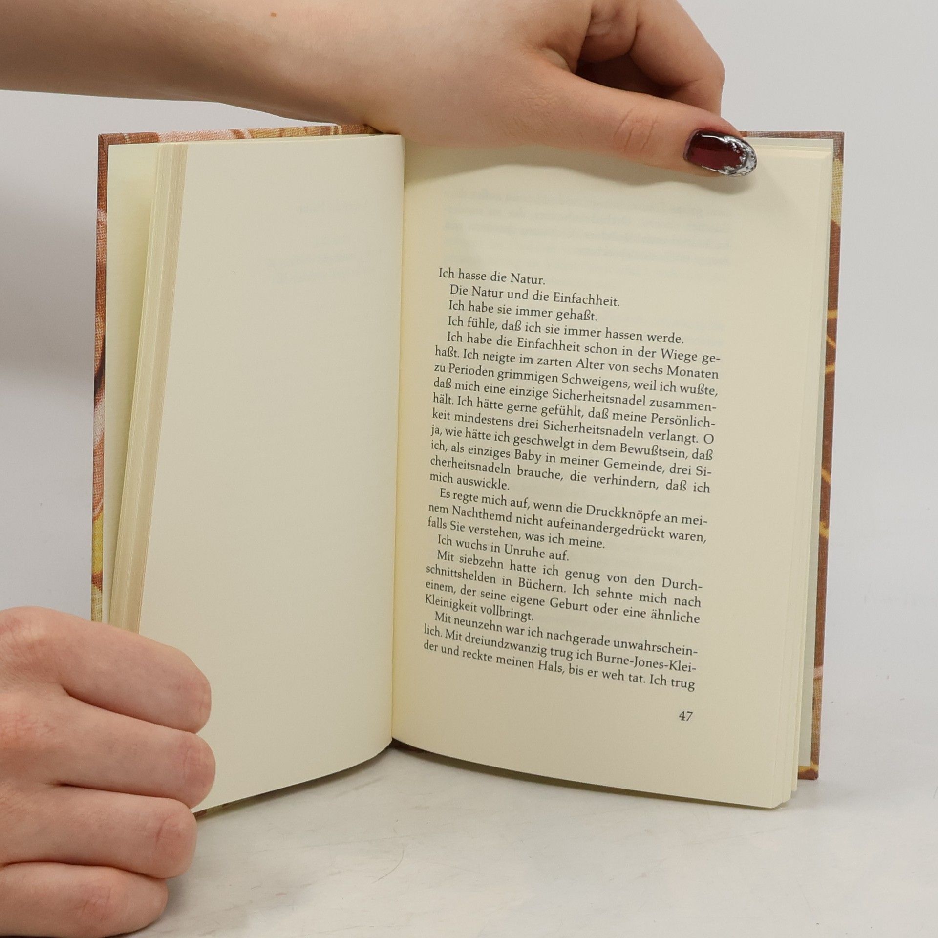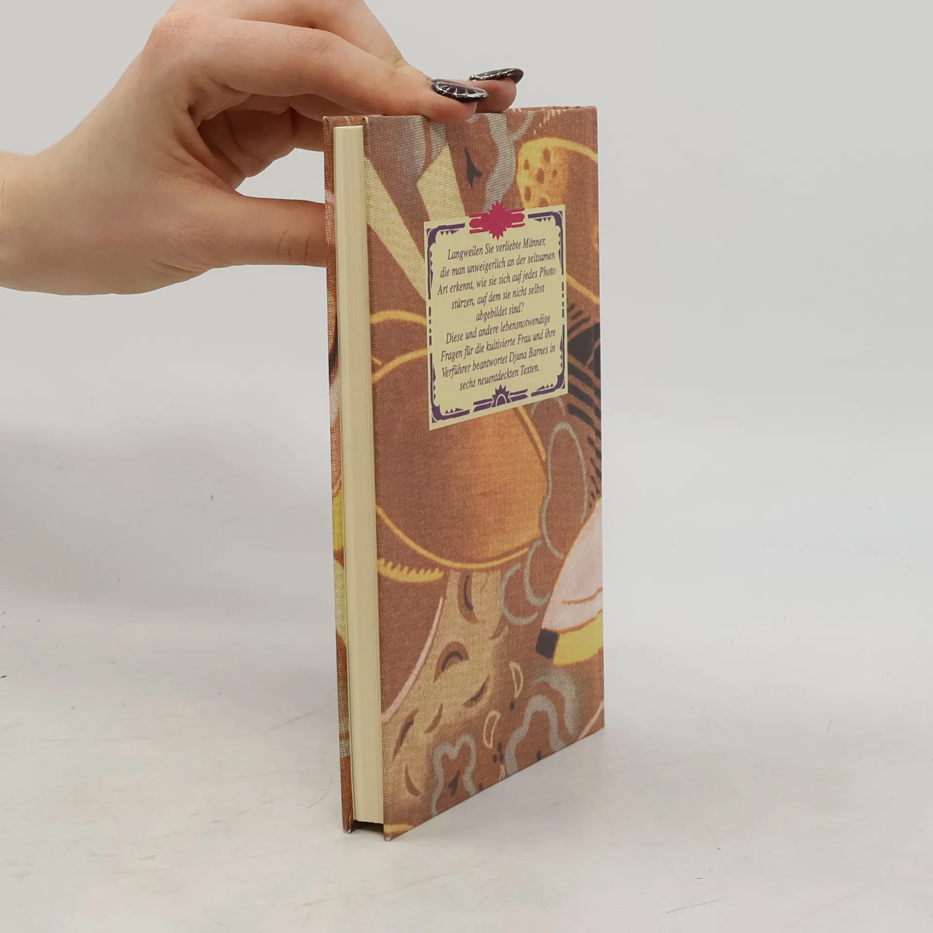 Geht es Ihnen auch so: Hassen Sie die Natur? Alles, was jung, einfach, praktisch, weiblich, kurz natürlich ist? Können Sie es auch nicht leiden, schlecht gelaunt zu sein, nach dümmlichen Mottos zu leben oder die Liebe für eine Zaubermacht zu halten? Möchten Sie gerne wissen, warum gerade Kinder zur Rechtfertigung der Existenz einer Frau herhalten müssen? Langweilen Sie verliebte Männer, die man unweigerlich an der seltsamen Art erkennt, wie sie sich auf jedes Foto stürzen, auf dem sie nicht selbst abgebildet sind? Diese und andere lebensnotwendige Fragen beantwortet Djuna Barnes in ihren Texten.