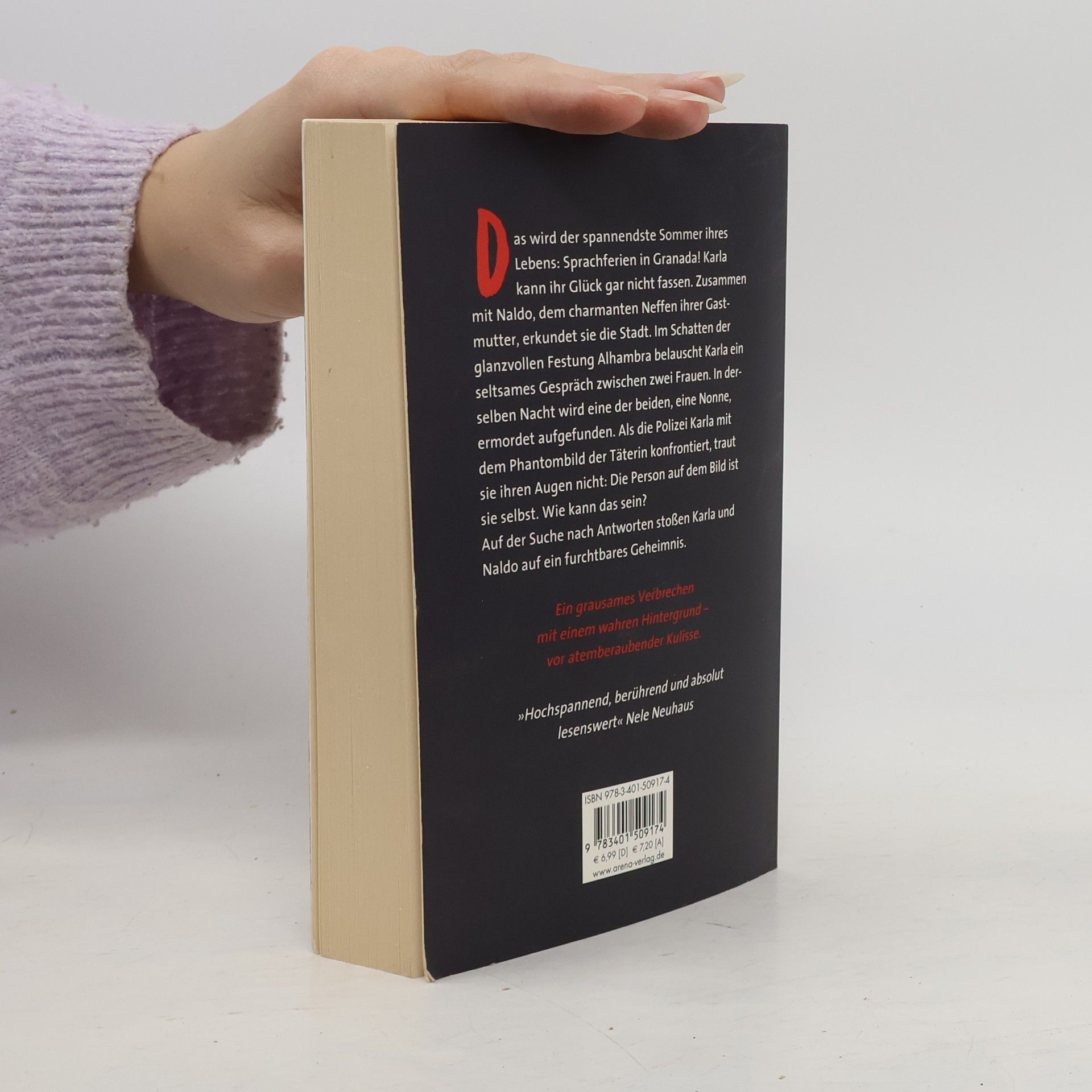 Das wird der spannendste Sommer ihres Lebens: Sprachferien in Granada! Karla kann ihr Glück gar nicht fassen. Zusammen mit Naldo, dem charmanten Neffen ihrer Gastmutter, erkundet sie die Stadt. Im Schatten der glanzvollen Festung Alhambra belauscht Karla ein seltsames Gespräch zwischen zwei Frauen. In derselben Nacht wird eine der beiden, eine Nonne, ermordet aufgefunden. Als die Polizei Karla mit dem Phantombild der Täterin konfrontiert, traut sie ihren Augen nicht: Die Person auf dem Bild ist sie selbst. Wie kann das sein? Auf der Suche nach Antworten stoßen Karla und Naldo auf ein furchtbares Geheimnis. Ein grausames Verbrechen mit einem wahren Hintergrund - vor atemberaubender Kulisse.
