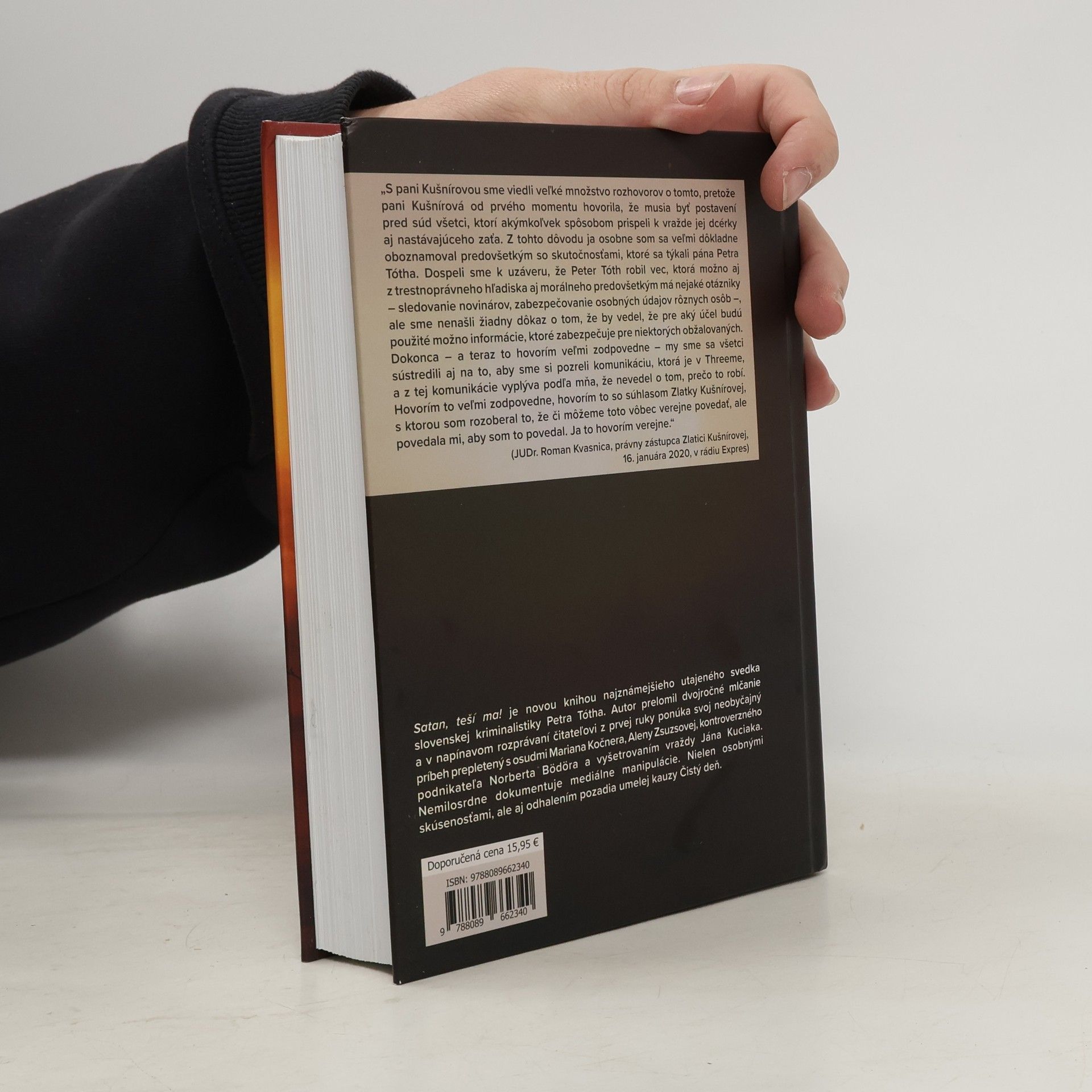 Satan, teší ma! je novou knihou Petra Tótha, známeho utajeného svedka slovenskej kriminalistiky, ktorý po dvojročnom mlčaní odhaľuje prepletené príbehy Mariana Kočnera, Aleny Zsuzsovej, vraždy Jána Kuciaka a ďalších. Autor dramaticky odhaľuje osudovú chybu Kočnera, ktorá viedla k odhaleniu Threemy a korupčnej siete, čím vrhá svetlo na nečestné praktiky a morálnu špinu v slovenskej spoločnosti. Tóth pokračuje v kritike stavu slovenskej žurnalistiky a zachytáva útrapy rodiny utajeného svedka, ktorá musela hľadať útočisko na opačnom brehu Atlantiku po nezákonnom vyzradení jeho identity. Svedok a jeho rodina utekali pred pomstou nájomných vrahov aj pred úkladmi tajnej služby vlastného štátu. Kniha sa odohráva v rôznych krajinách Severnej Ameriky a Európy, pričom paralelné dejové línie ponúkajú komplexný pohľad na situáciu. Tóthova kniha predstavuje postavy z podsvetia, politiky, médií a spravodajských služieb a opisuje intrigy malého Slovenska. Ponúka nový pohľad na vraždu Jána Kuciaka a spôsob jej vyšetrovania, ako aj na reakcie hysterickej tlače, čím zachytáva najtraumatickejší zážitok slovenskej spoločnosti za posledné roky.