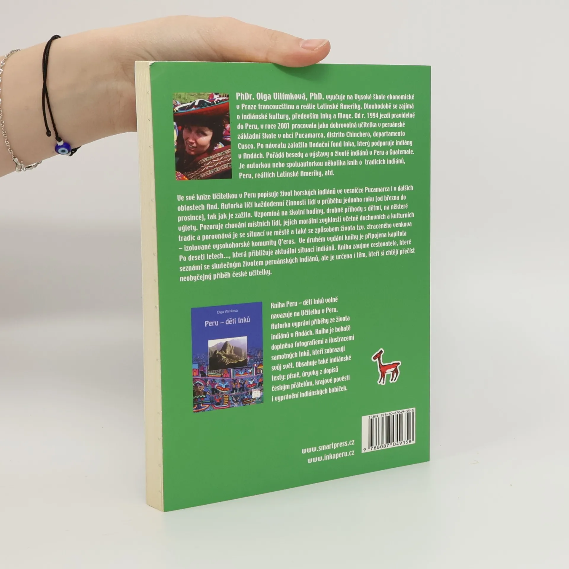 Ve své knize Učitelkou v Peru popisuje Olga Vilímková život horských indiánů ve vesničce Pucamarca i v dalších oblastech And. Autorka líčí každodenní činnosti lidí v průběhu jednoho roku (od března do prosince), tak jak je zažila. Vzpomíná na školní hodiny, drobné příhody s dětmi, na některé výlety. Pozoruje chování místních lidí, jejich morální zvyklosti včetně duchovních a kulturních tradic a porovnává je se situací ve městě a také se způsobem života tzv. ztraceného venkova - izolované vysokohorské komunity Q'eros. Ve druhém vydání knihy je připojena kapitola "Po deseti letech...", která přibližuje aktuální situaci indiánů. Kniha zaujme cestovatele, které seznámí se skutečným životem peruánských indiánů, ale je určena i těm, kteří si chtějí přečíst neobyčejný příběh české učitelky.