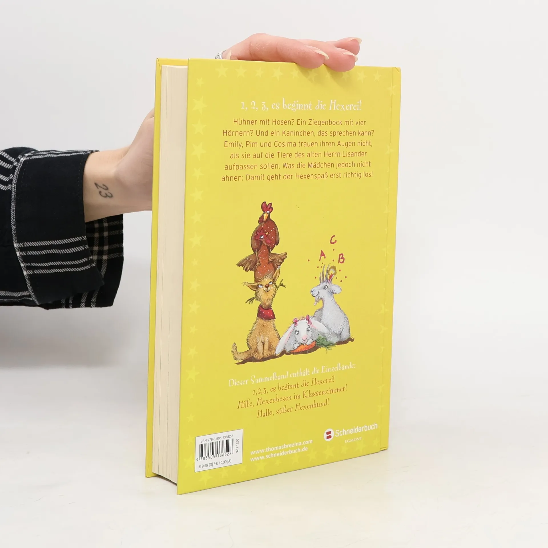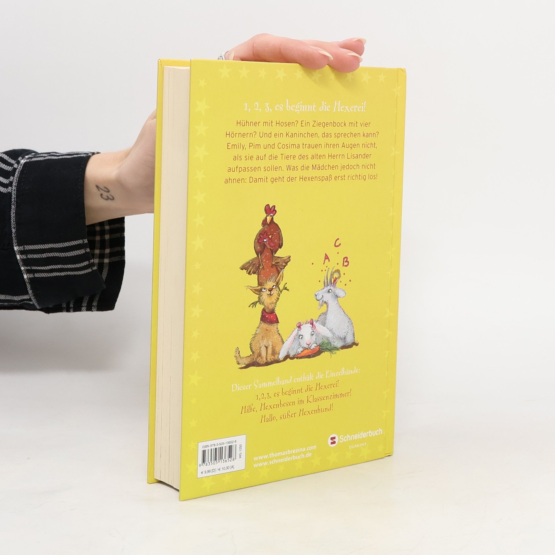 Emily, Pim und Cosima sind nicht nur allerbeste Freundinnen, sondern auch die Gründerinnen des Kichererbsen-Clubs. Doch keiner nimmt die drei Mitglieder ernst, schon gar nicht ihre frechen Brüder. Das ändert sich erst, als die Mädchen auf die ungewöhnlichen Tiere des alten Herrn Lisander aufpassen sollen. Plötzlich verwandeln sich die drei Kichererbsen nämlich in Kicherhexen – und nervende Brüder in Mistkäfer! Dieser Sammelband enthält die Einzelbände: 1,2,3, es beginnt die Hexerei! (Band 1) Hilfe, Hexenbesen im Klassenzimmer! (Band 2) Hallo, süßer Hexenhund! (Band 3)