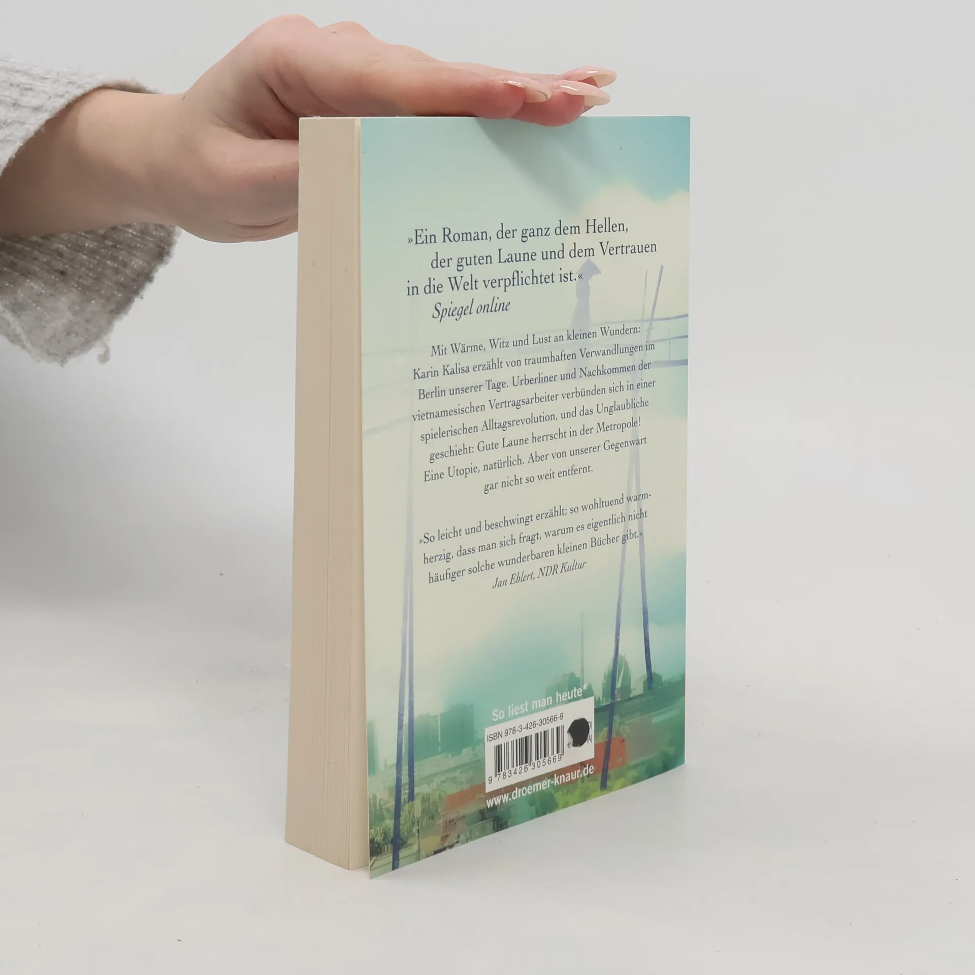 Der Bestseller von Karin Kalisa ist ein Sommer-Roman mit Tiefgang für jede Lebenslage. Mit Wärme, Witz und Lust an kleinen Wundern erzählt Karin Kalisa von traumhaften Verwandlungen im Berlin unserer Tage. Ausgehend vom kleinen vietnamesischen Laden des studierten Archäologen Sung nimmt eine Völkerverständigung der ganz eigenen Art ihren Lauf. Urberliner und Nachkommen der vietnamesischen Vertragsarbeiter verbünden sich in einer spielerischen Alltagsrevolution: Brücken aus Bambus spannen zwischen den Häusern, Parkwächter tragen Kegelhüte, auf Brachflächen grünt exotisches Gemüse, und ein Zahnarzt macht Sonntagsdienst für Patienten aus Fernost. Das Unglaubliche geschieht: Gute Laune herrscht in der Metropole! Eine Utopie, natürlich. Aber von unserer Gegenwart gar nicht so weit entfernt. „So leicht und beschwingt erzählt, so wohltuend warmherzig, dass man sich fragt, warum es eigentlich nicht häufiger solche wunderbaren kleinen Bücher gibt.“ Jan Ehlert, NRD Kultur