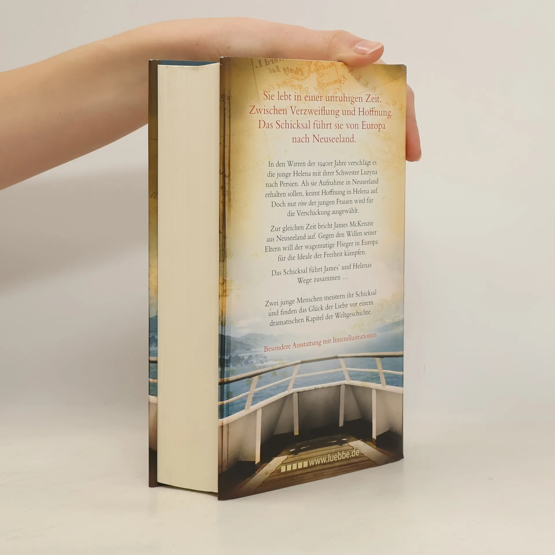 Sarah Lark legt nach ihren großen Familiensagas nun eine ergreifende Liebesgeschichte zwischen Europa und Neuseeland vor. Der wunderbar illustrierte Roman EINE HOFFNUNG AM ENDE DER WELT knüpft an die Familiengeschichte der McKenzies aus der bekannten Weiße-Wolke-Saga an. In den Wirren der 1940er Jahre verschlägt es die junge Polin Helena mit ihrer Schwester Luzyna nach Persien. Als sie Aufnahme in Neuseeland erhalten sollen, keimt Hoffnung in Helena auf. Doch nur eine der jungen Frauen wird für die Verschickung ausgewählt. Zur gleichen Zeit bricht James McKenzie aus Neuseeland auf. Gegen den Willen seiner Eltern will der wagemutige Flieger in Europa für die Ideale der Freiheit kämpfen.Das Schicksal führt James' und Helenas Wege zusammen ... Zwei junge Menschen meistern ihr Schicksal und finden das Glück der Liebe vor einem dramatischen Kapitel der Weltgeschichte.